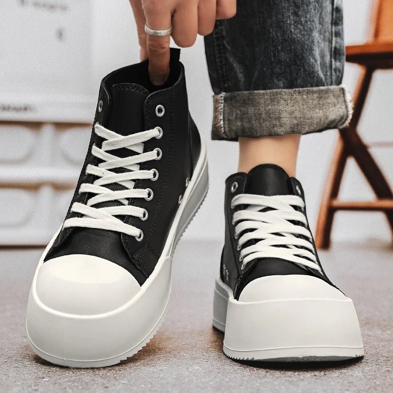 High-Top Platform Sneakers - Men's Leather Skateboard & Tennis Trainers