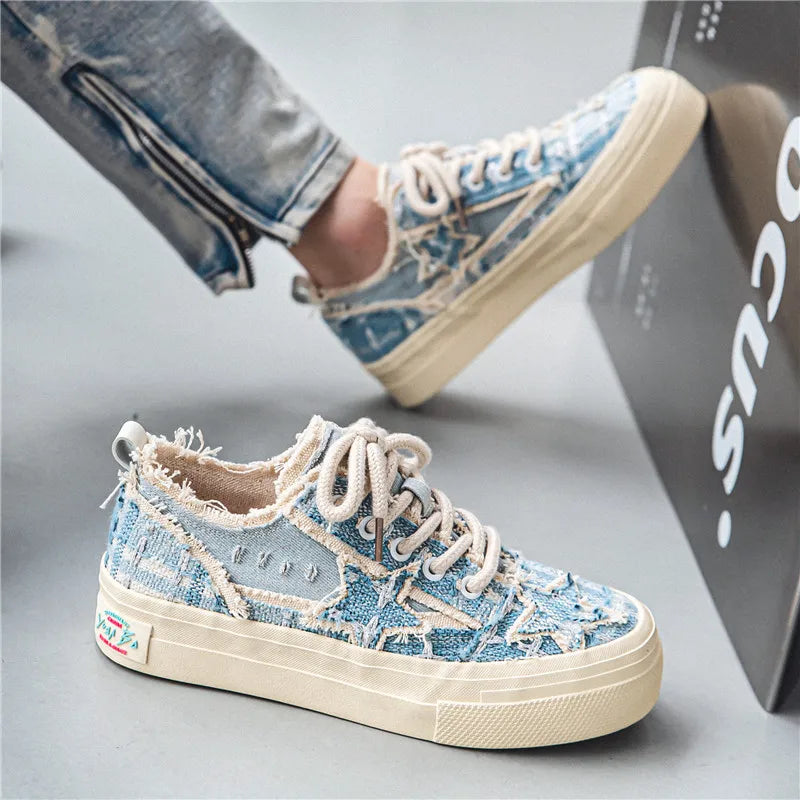 Men's Casual Denim Sneakers - Stars Platform Skateboard Shoes
