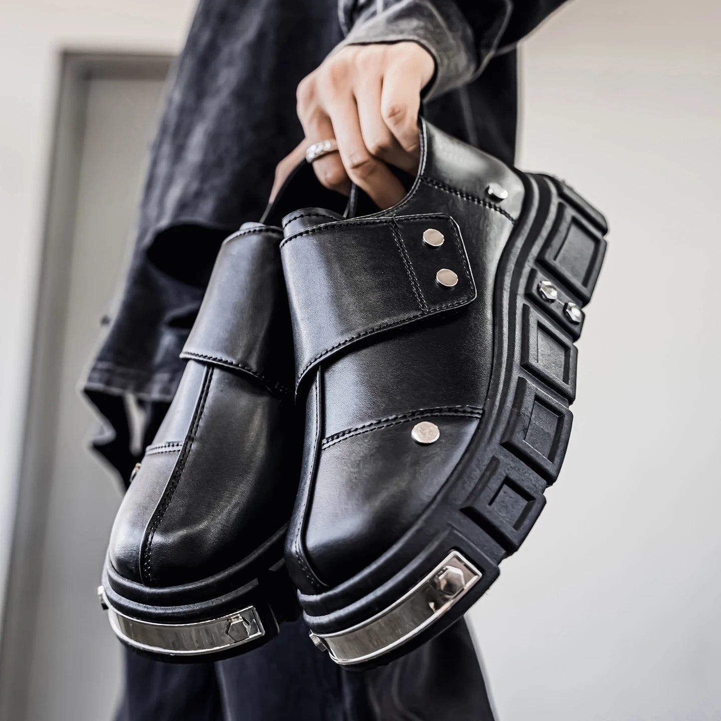Crafted for the modern gentleman who appreciates bold style with refined details, these leather platform shoes seamlessly transition from business casual to evening wear. The striking metal punk accents add contemporary flair while the classic derby silhouette maintains timeless appeal.