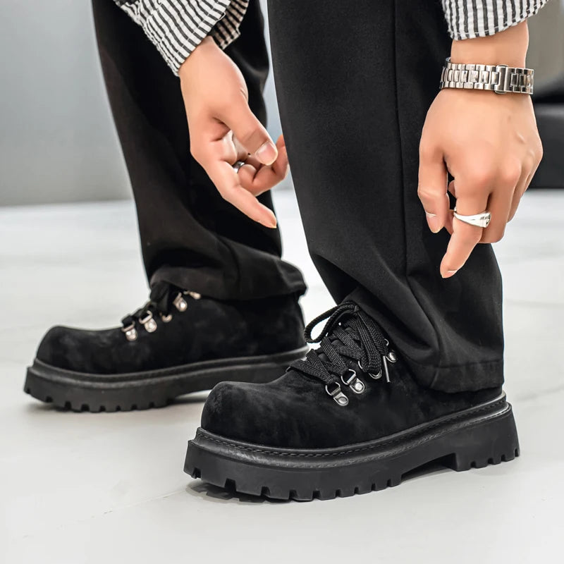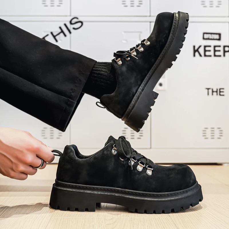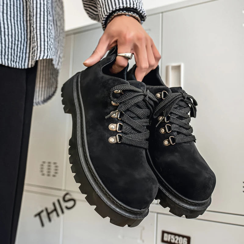 Men's Platform Suede Leather Lace-up Derby Shoes