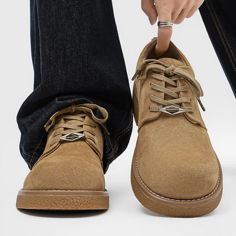 Men's Suede Leather Platform Work Shoes - Lace-Up Business Sneakers