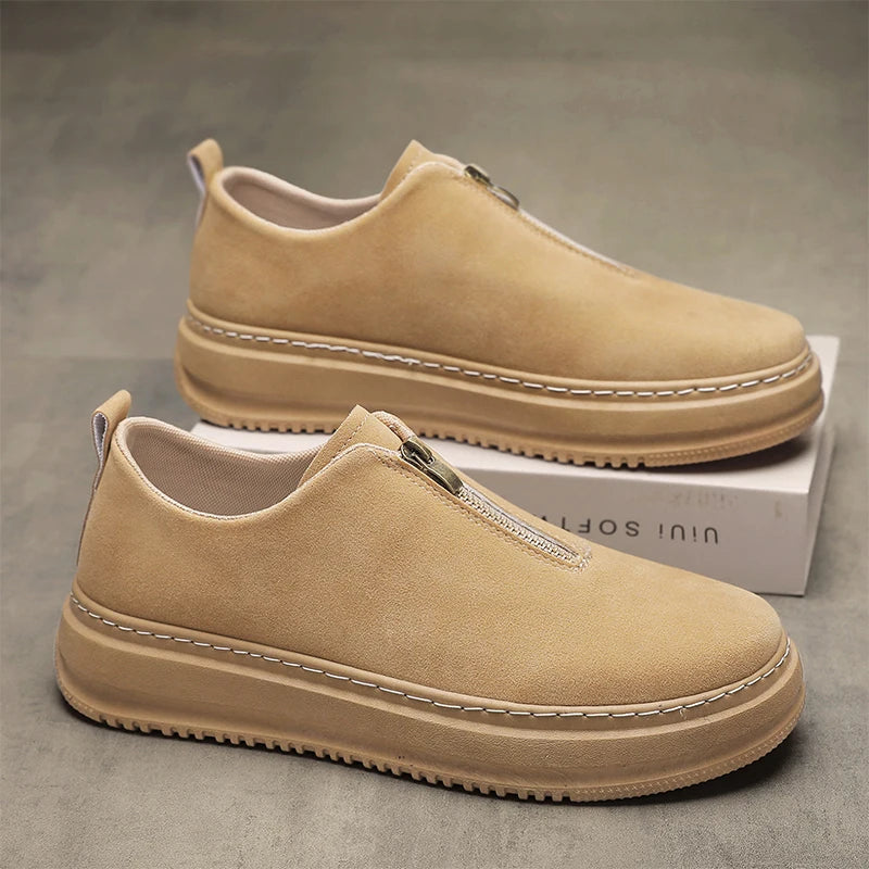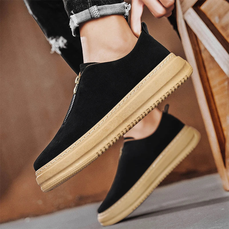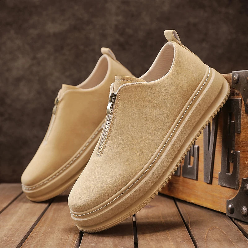 Men's Suede Leather Platform Work Shoes - Zipper Casual Business Sneakers
