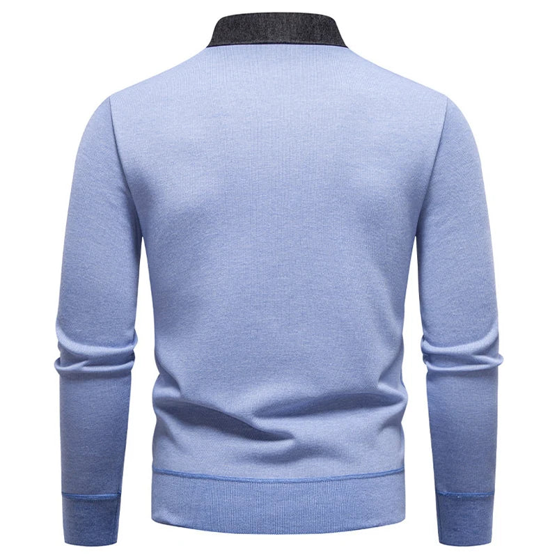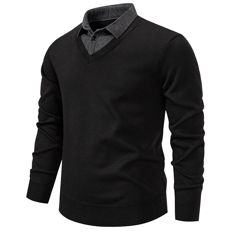 Men's Fake Two-Piece Knitted Pullover - Slim Fit Turn Down Collar Sweater