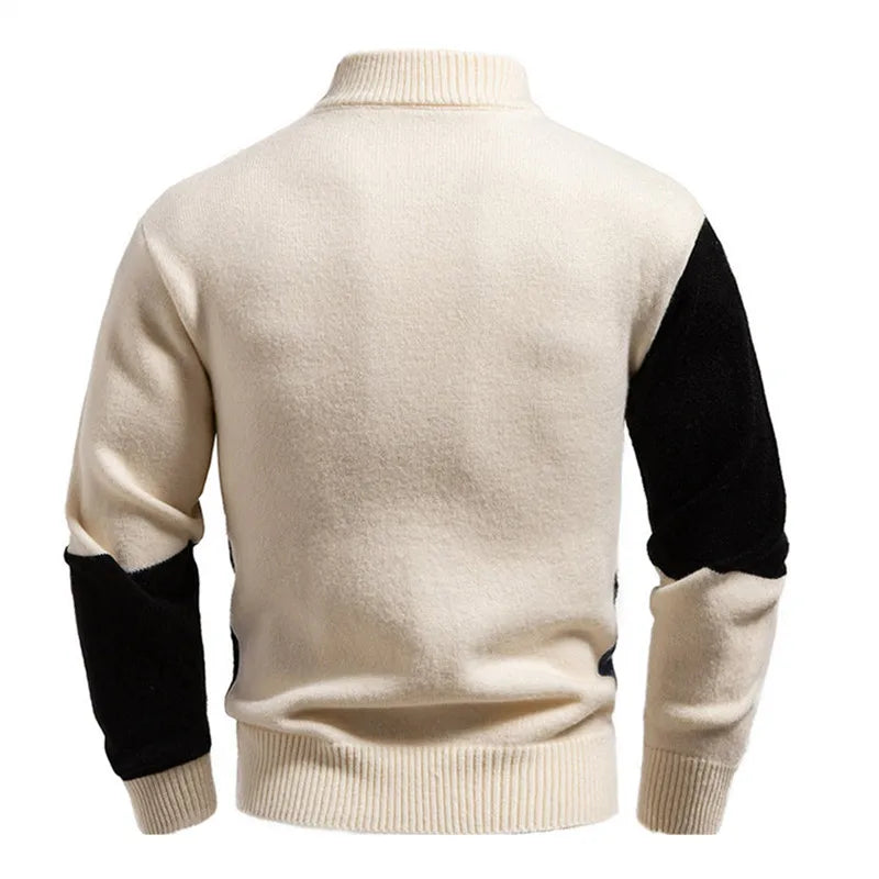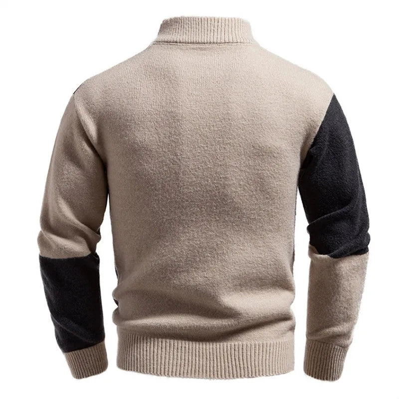 Discover contemporary style with this modern mock neck knitted sweater featuring eye-catching patchwork detailing and warm construction. The casual pullover design and fashionable aesthetic make this sweater perfect for autumn and winter, offering both comfort and on-trend appeal.