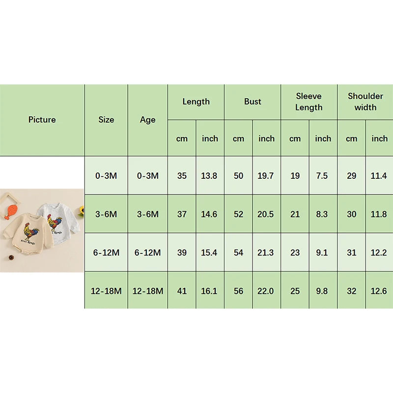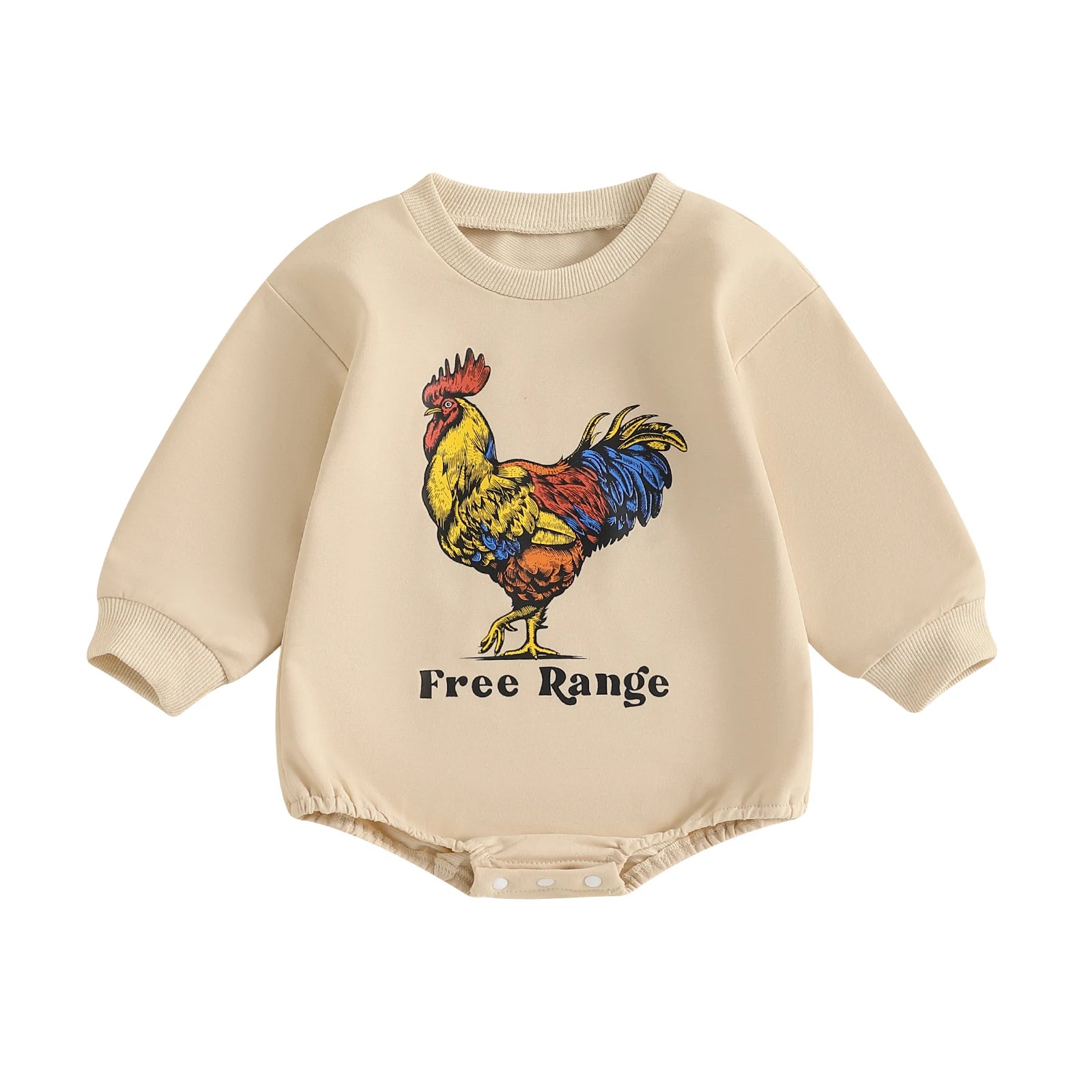 Baby Boys Western Rooster Print Romper - Spring Long Sleeve Crew Neck Jumpsuit (0-18M)