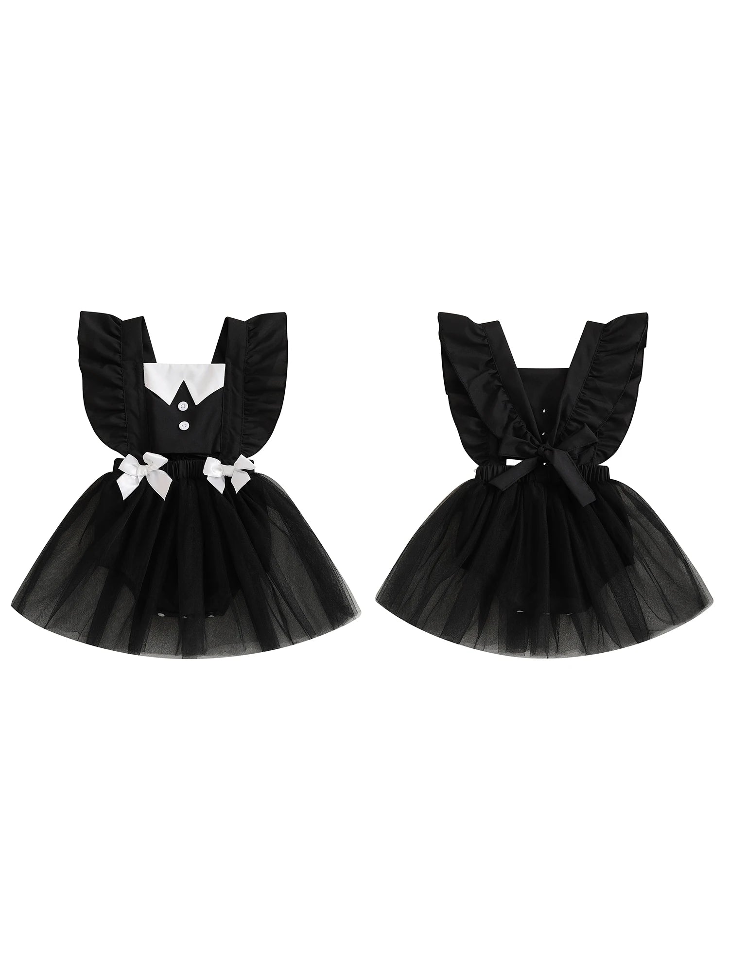 Baby Girls' Halloween Romper Dress - Flutter Sleeves Square Neck Tulle Patchwork Jumpsuit
