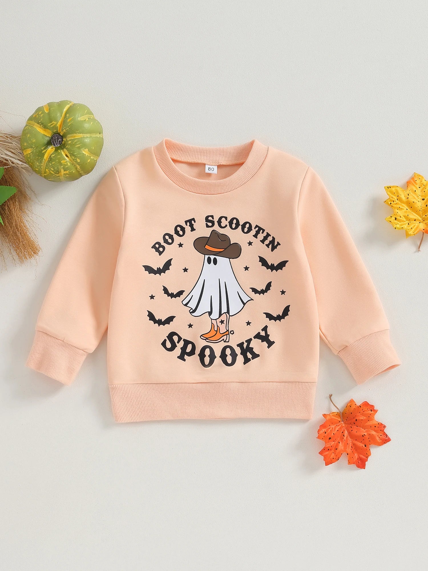 Get your little ghost ready for Halloween with this charming long-sleeve sweatshirt featuring cute ghost and letter prints. Perfect for trick-or-treating, Halloween parties, or cosy autumn days!