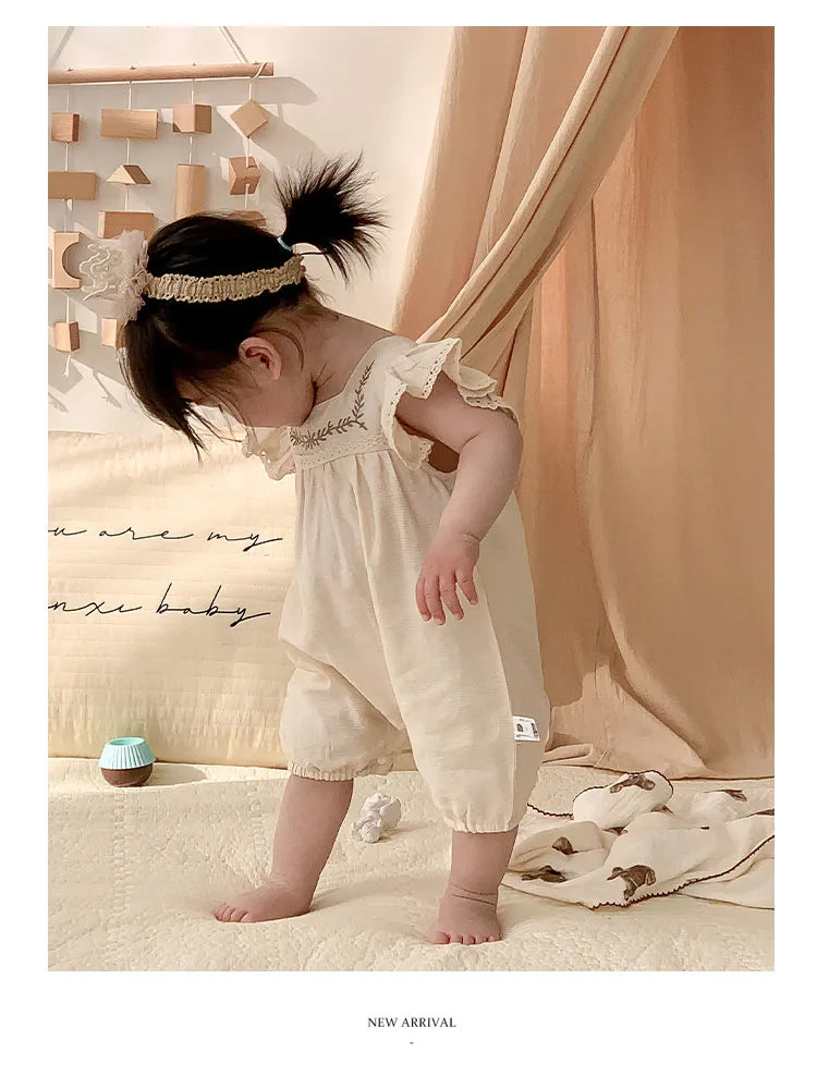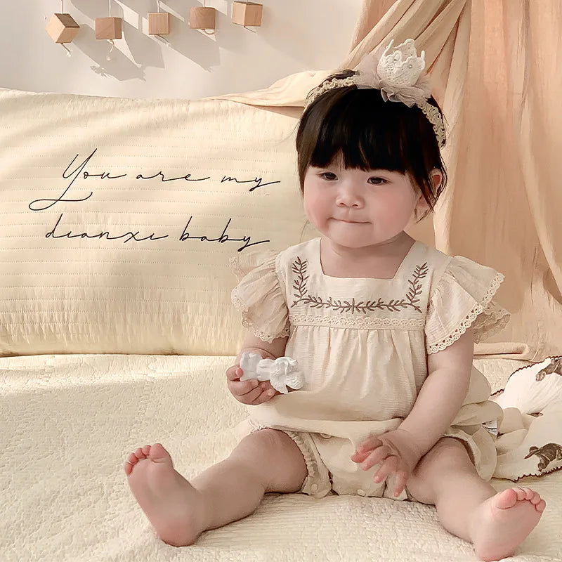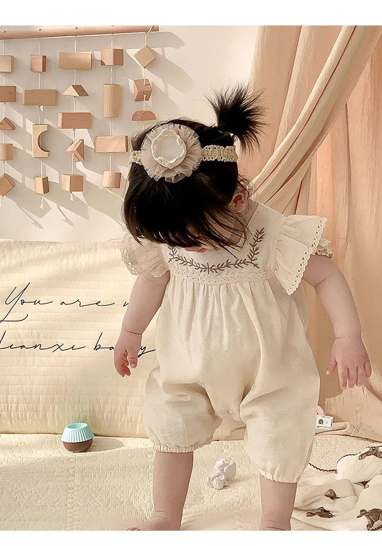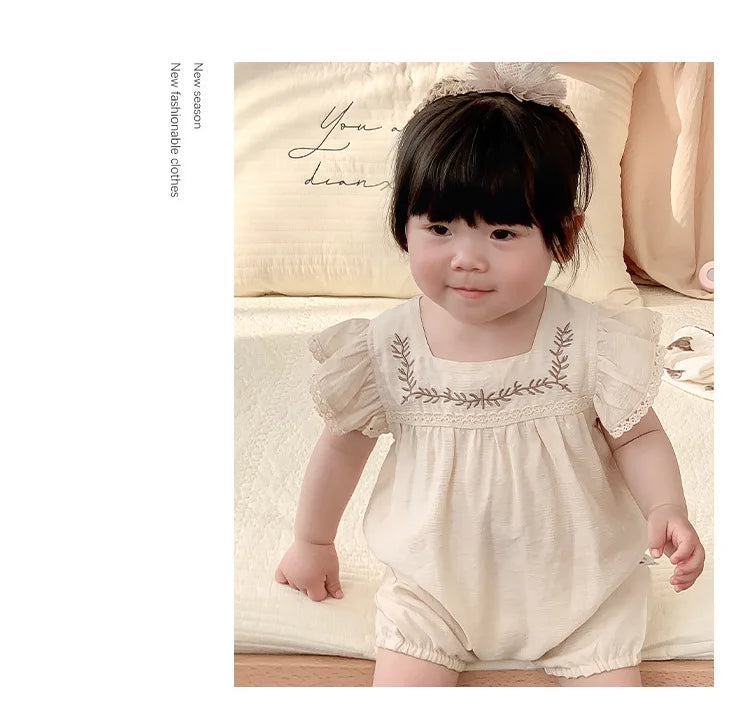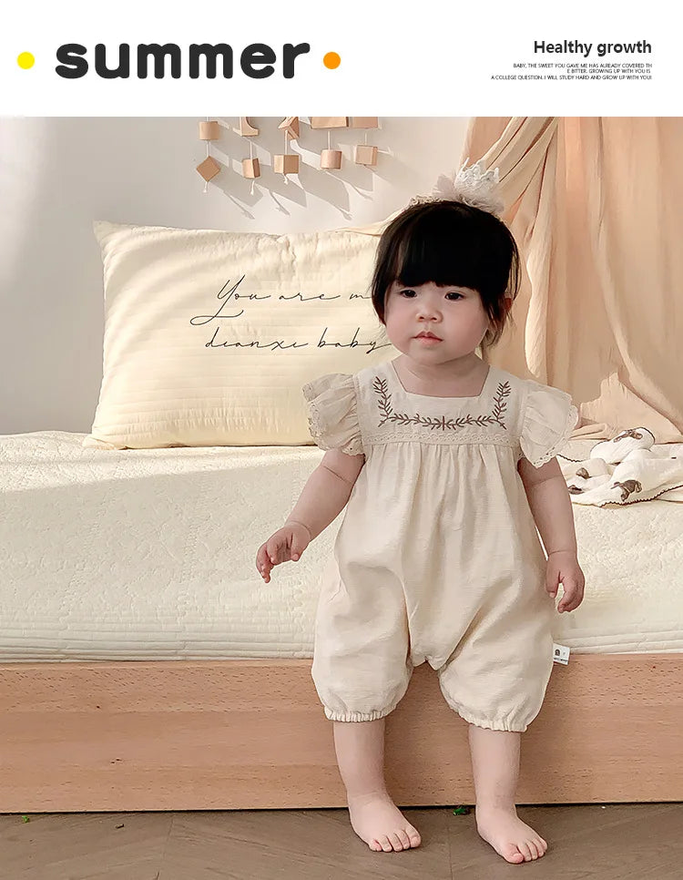 Baby Girls Embroidery Rompers Flare Sleeve Jumpsuit