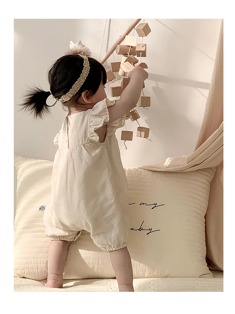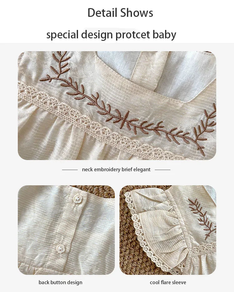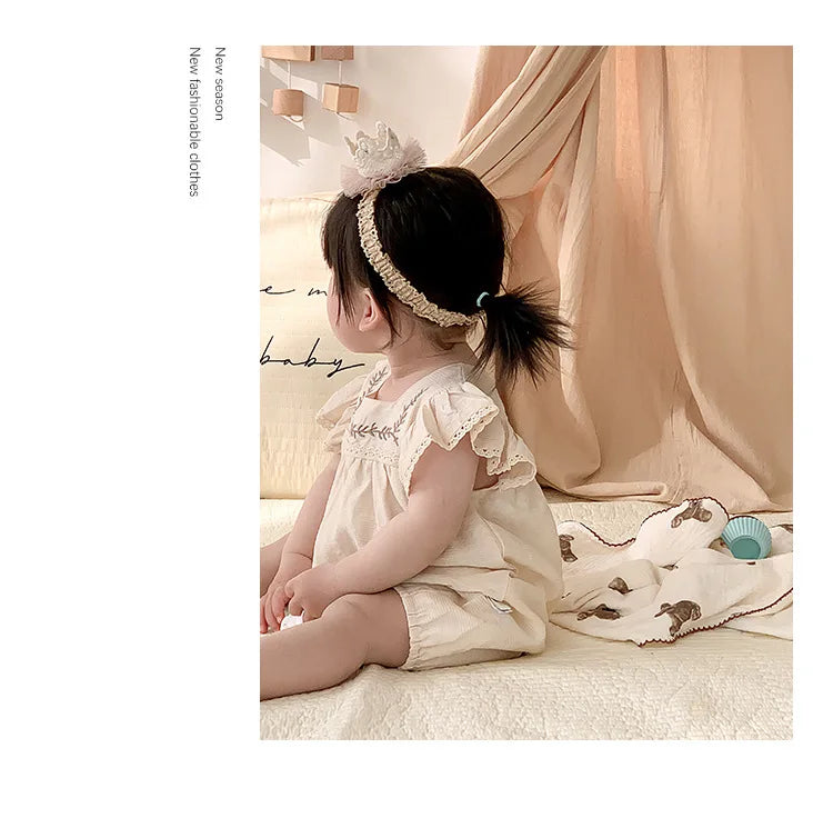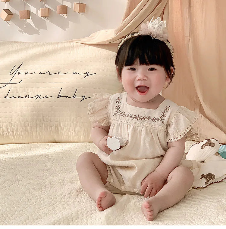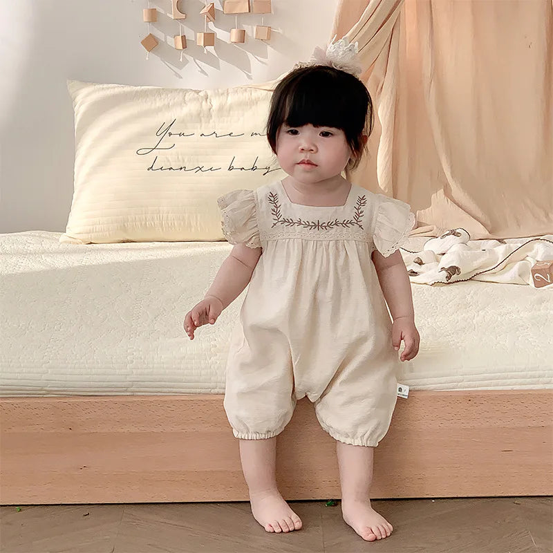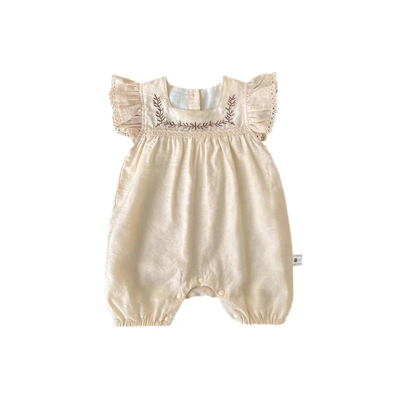 Baby Girls Embroidery Rompers Flare Sleeve Jumpsuit