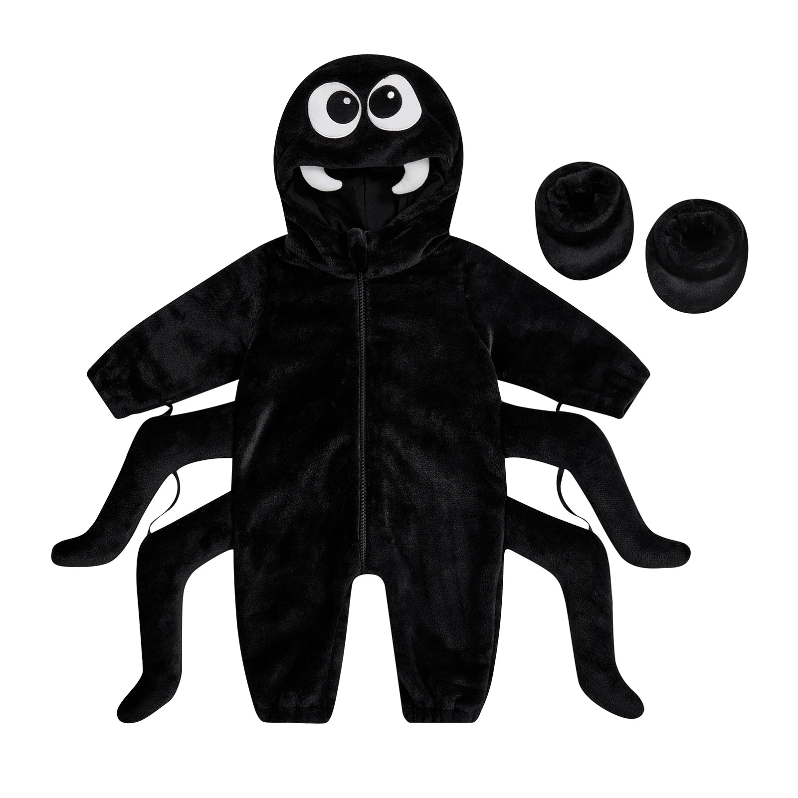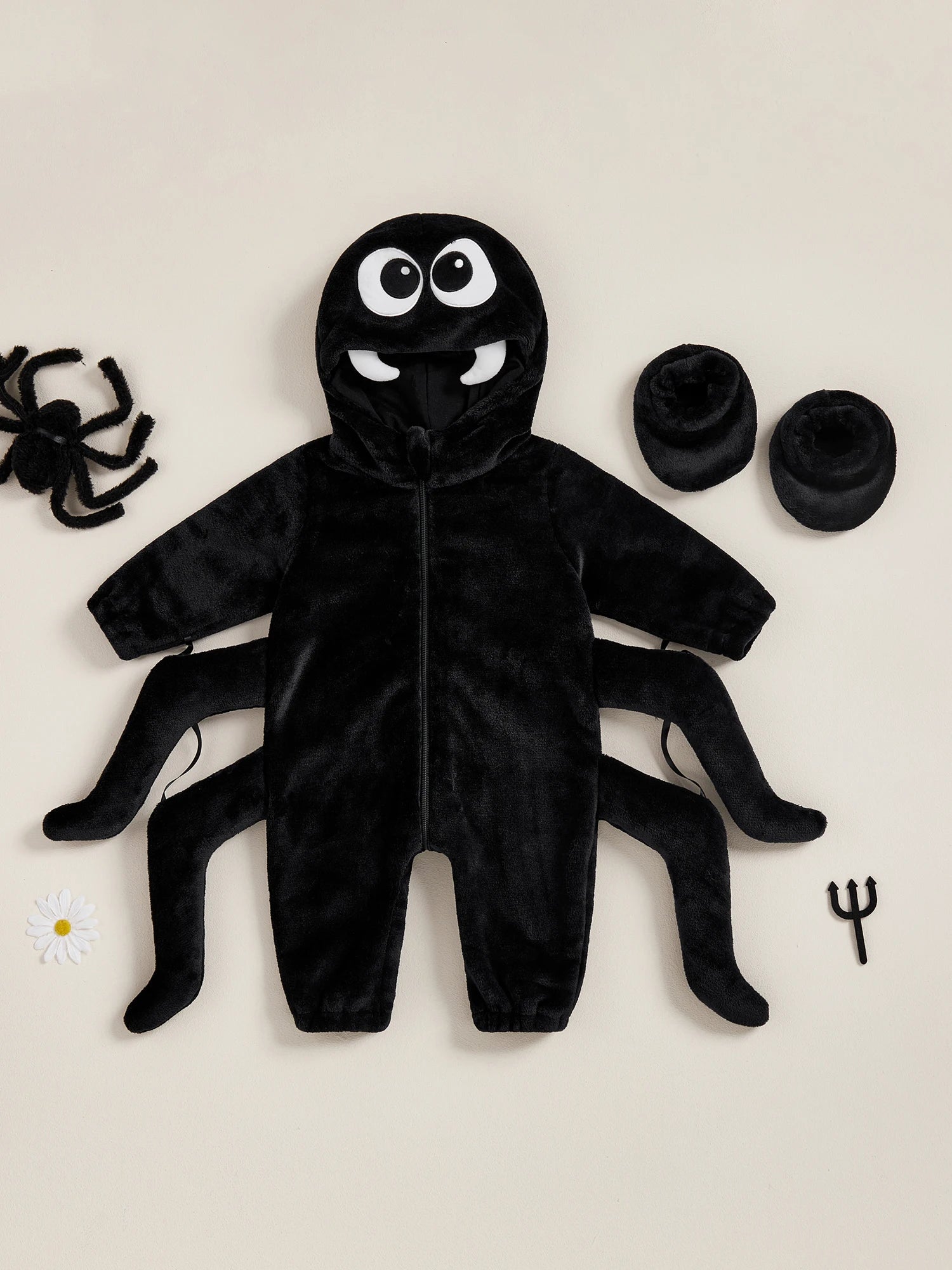 Baby Spider Costume - Halloween Hooded Jumpsuit with Foot Covers