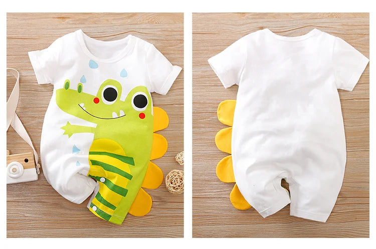 Baby's Cartoon Crocodile 3d Printed Cotton Comfortable Casual Short Sleeve Bodysuit Romper Babygrow