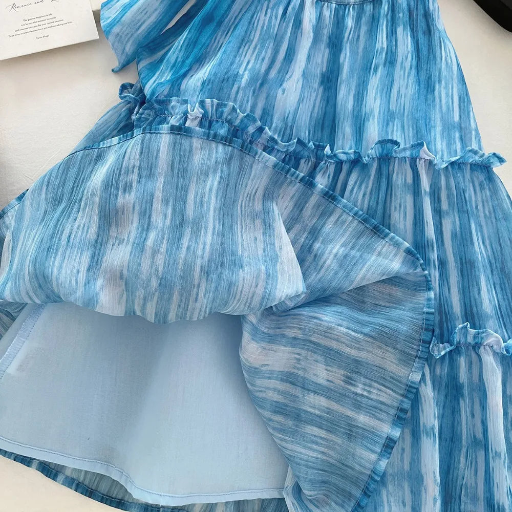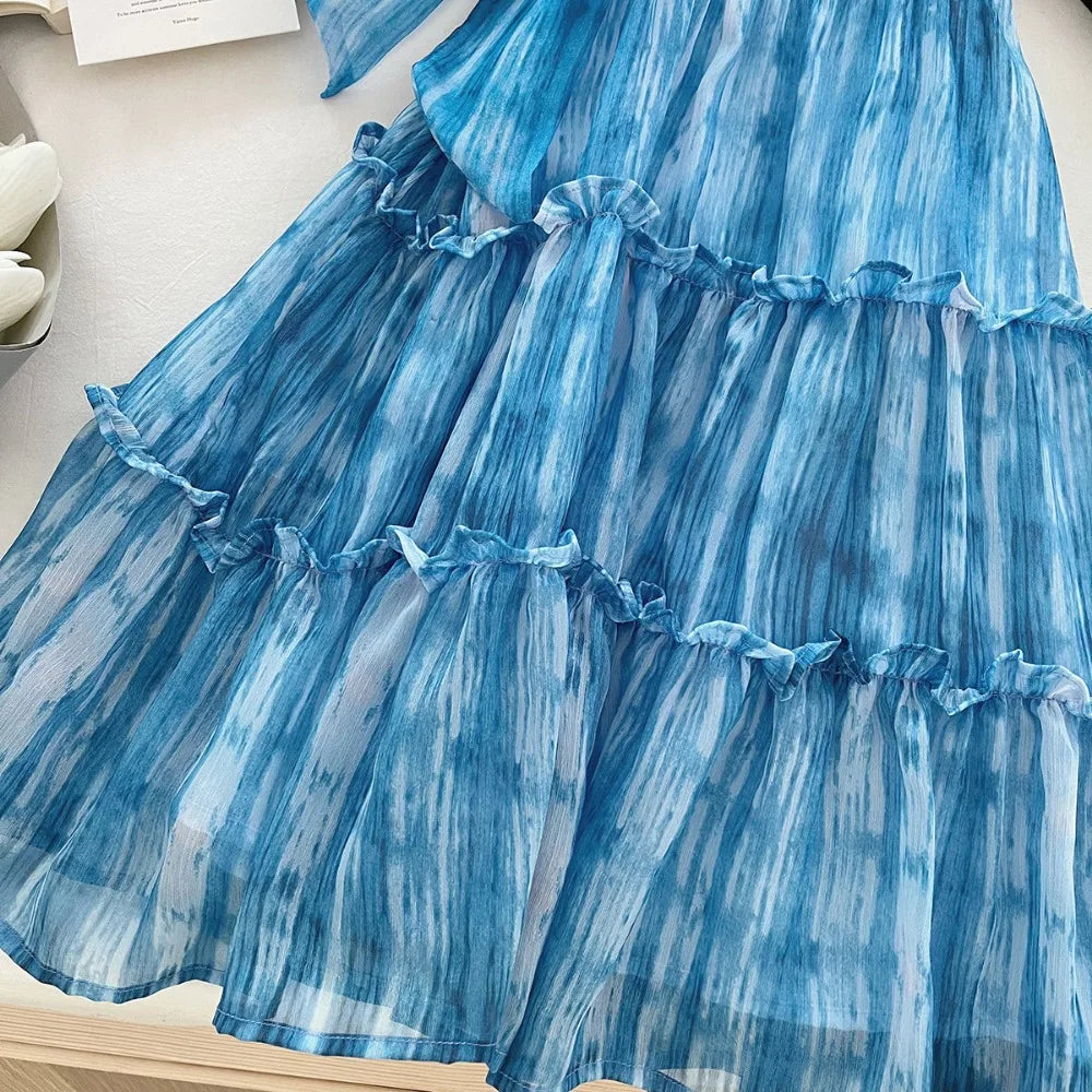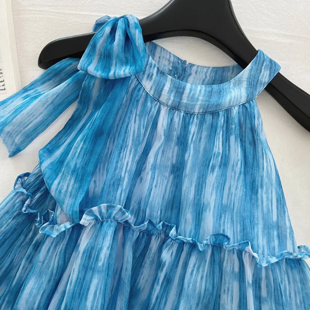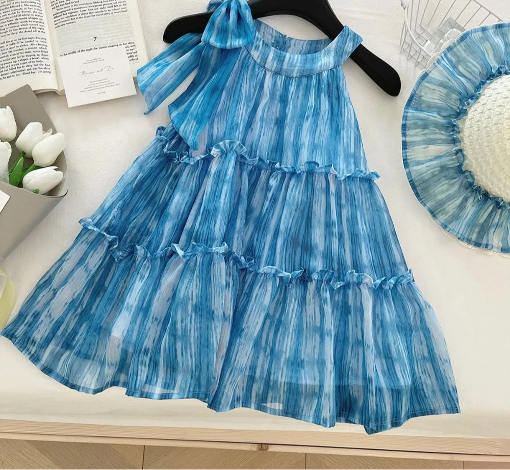 Girl's Summer Casual Round Neck Sleeveless 3D Bow Pleated A-line Dress 4-7 Years Old