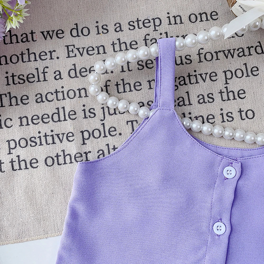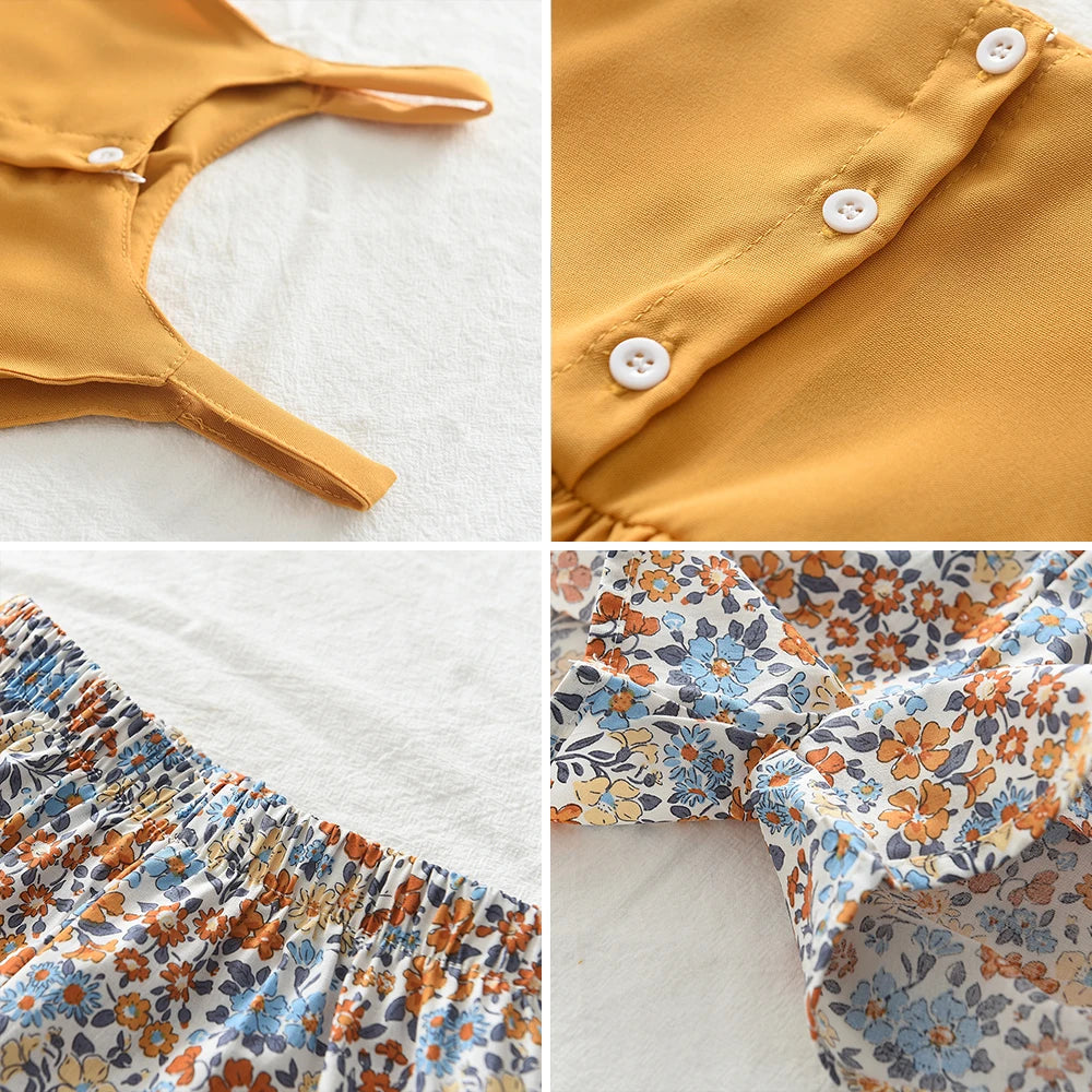 This charming summer outfit set combines a solid colour suspender t-shirt with beautiful floral shorts, creating the perfect ensemble for warm weather. The 2-piece set is ideal for casual outings, playtime, and everyday adventures for young girls.