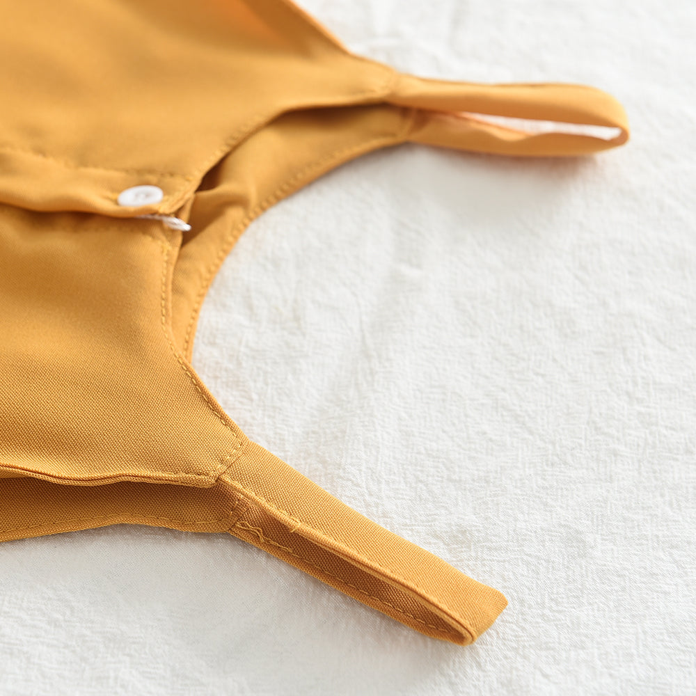 - Top Design: Solid colour with suspender straps
