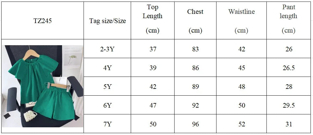 Girls Summer Outfit Set - Green Round Neck Top & Shorts