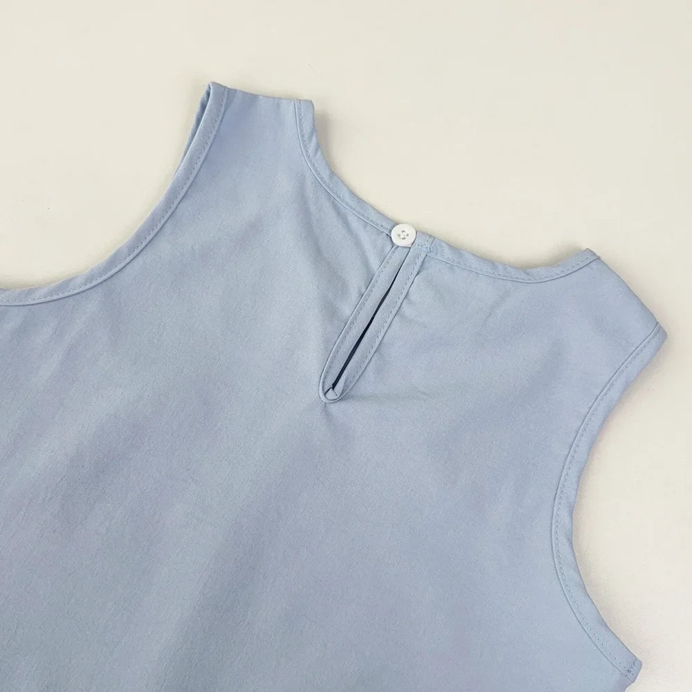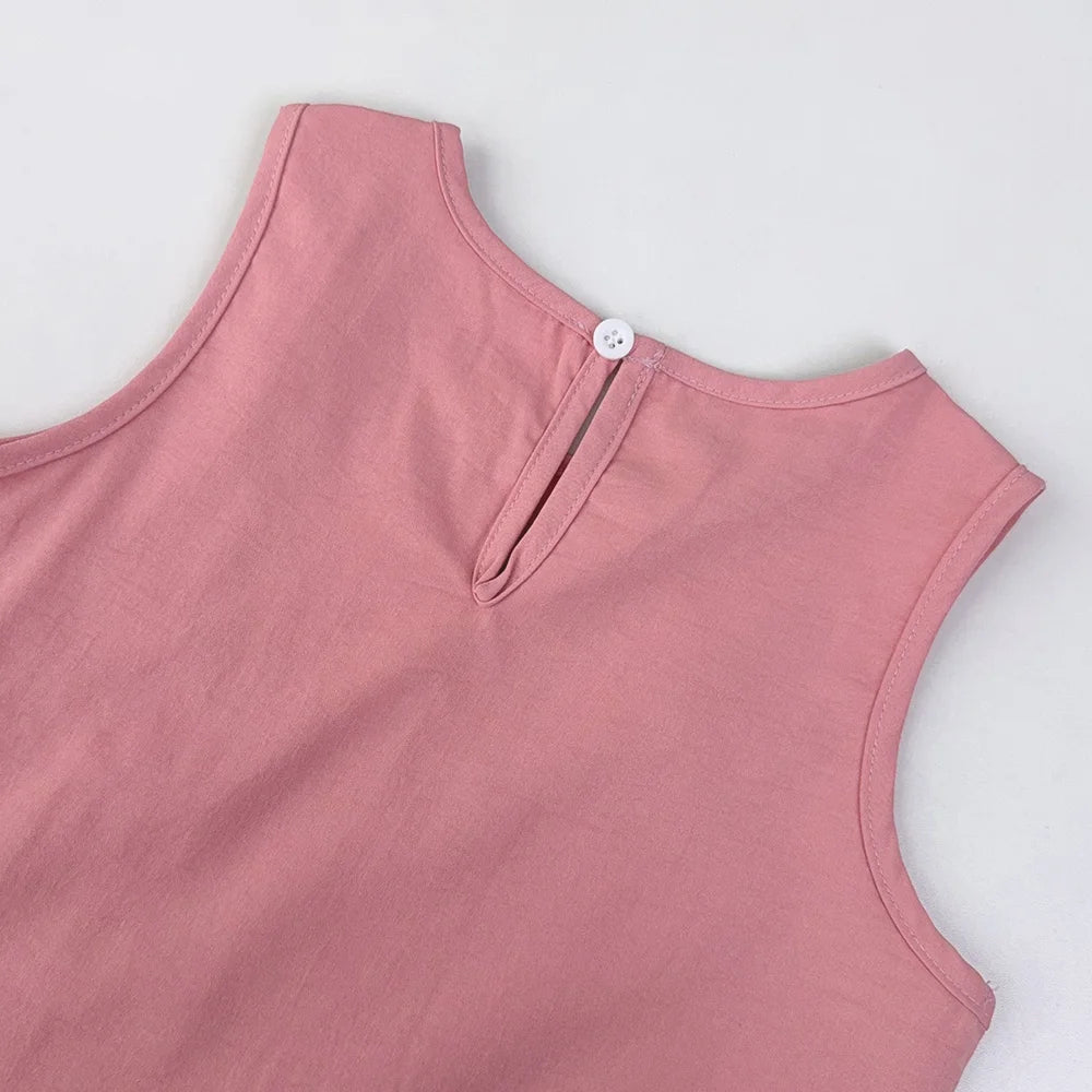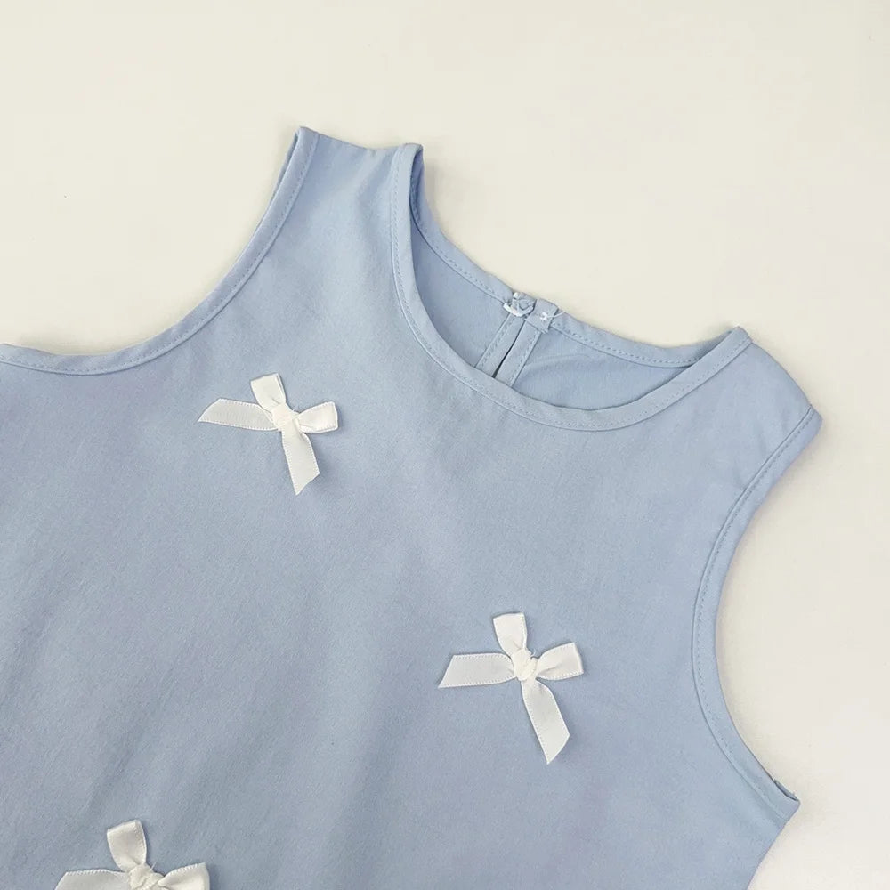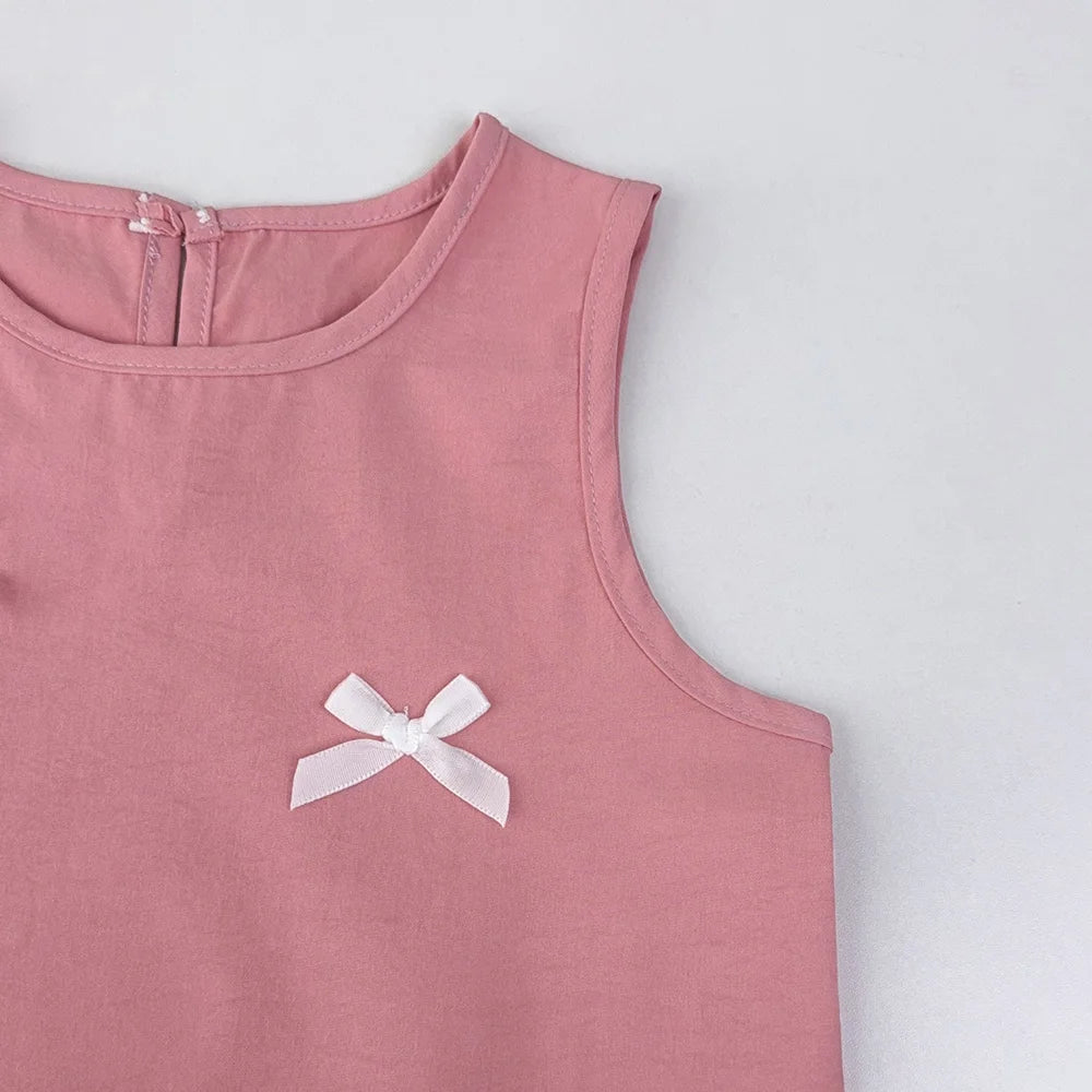 Girl's Summer Casual Round Neck Bow Sleeveless Princess Dress