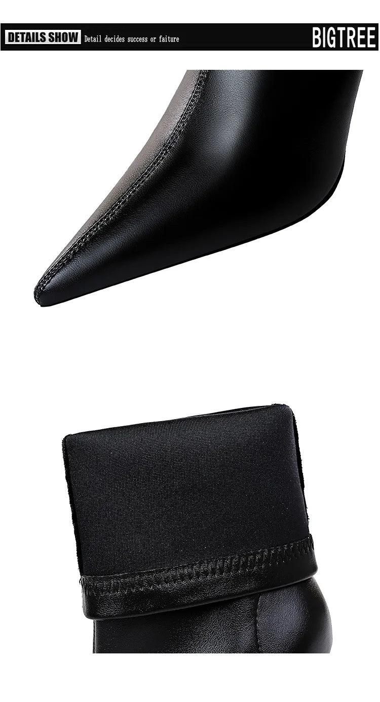 Step into autumn and winter in style with these sophisticated leather ankle boots. Featuring elegant high heels and a classic short boot design, these ladies' booties are perfect for adding a touch of refinement to any outfit during the cooler months.