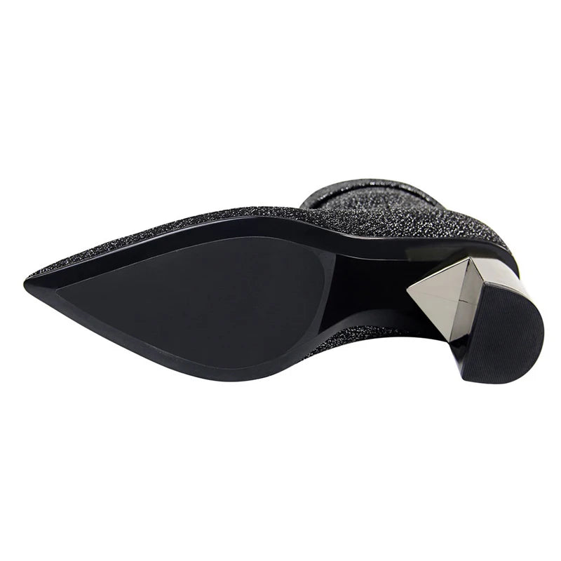 These versatile sock boots pair beautifully with skinny jeans, leggings, midi skirts, or dresses. The elastic upper hugs your leg for a sleek silhouette, while the metal block heel adds an edgy, contemporary touch to any outfit.