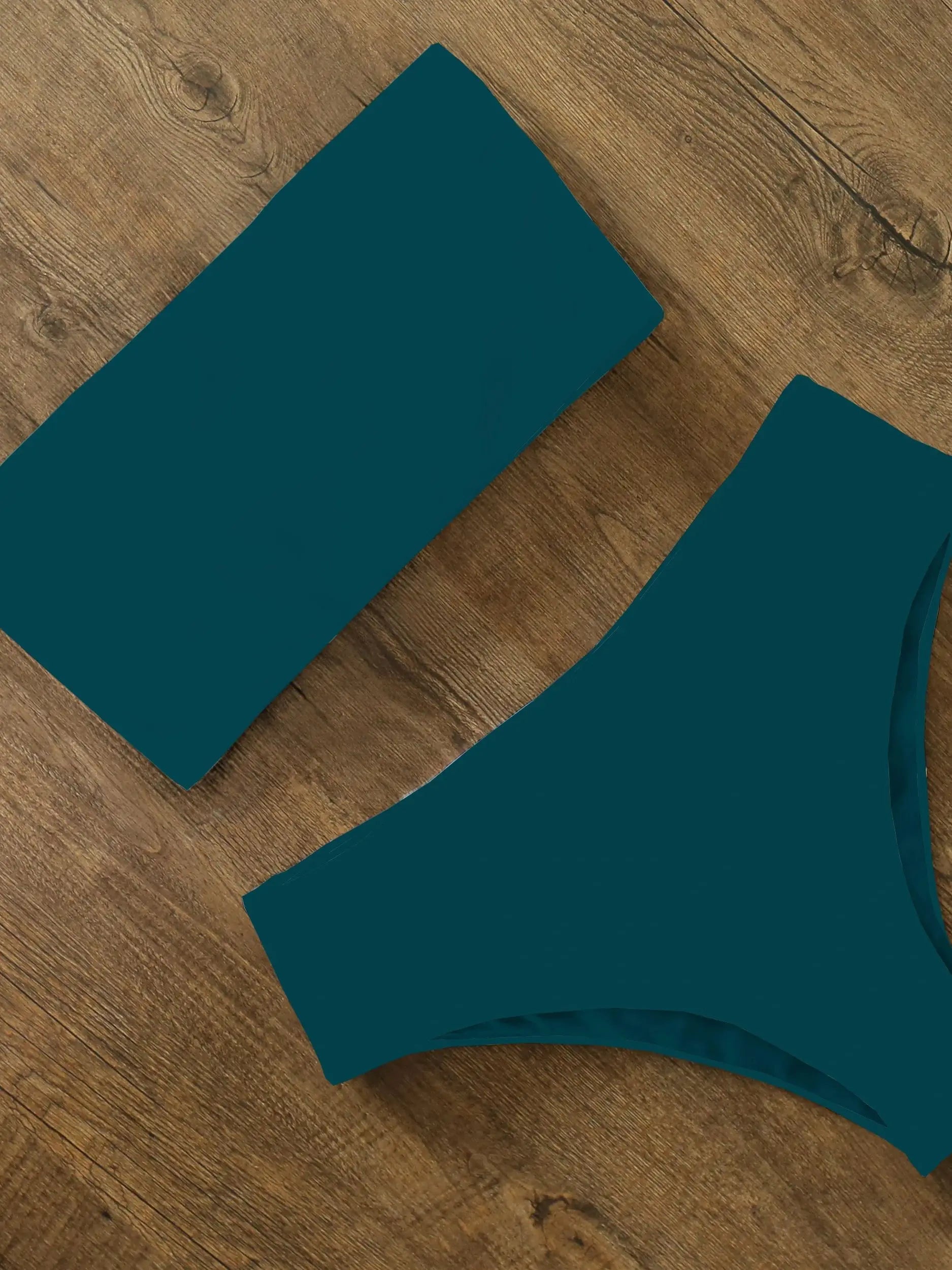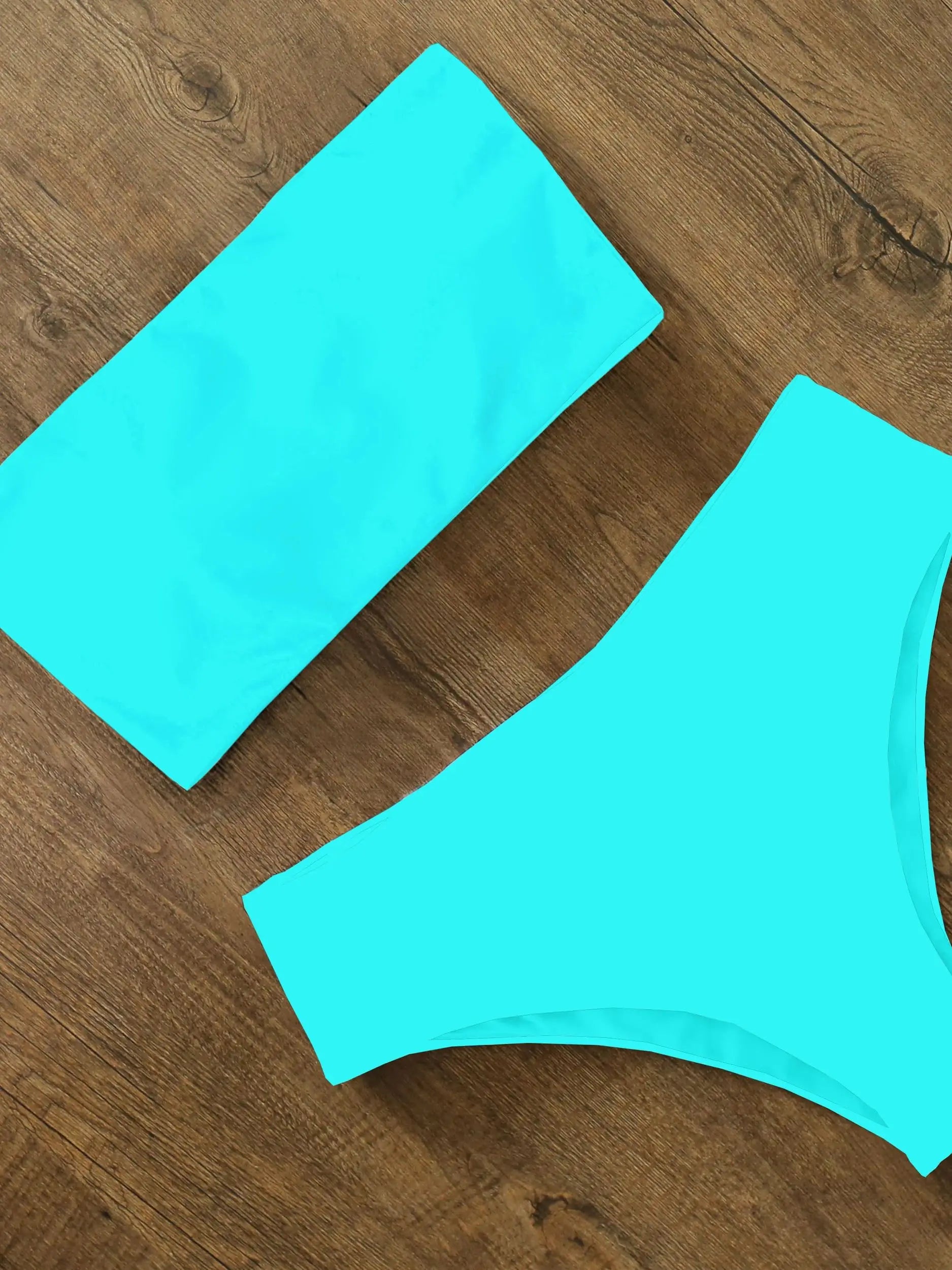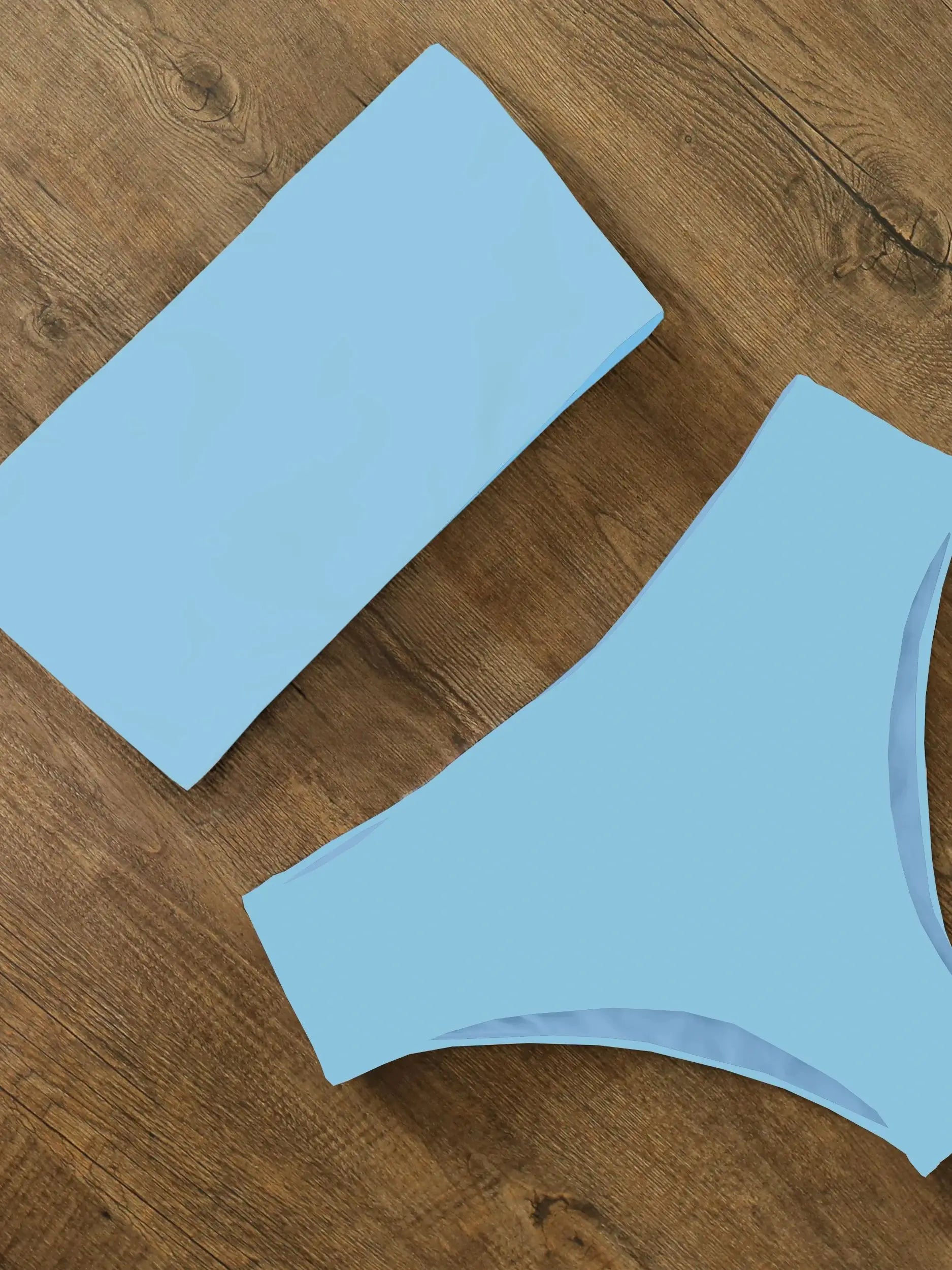 Make a statement at the beach or pool with this stunning high waist bikini set. Featuring a trendy cross-back bandeau top and flattering high-waisted bottoms, this swimsuit combines comfort with contemporary style.