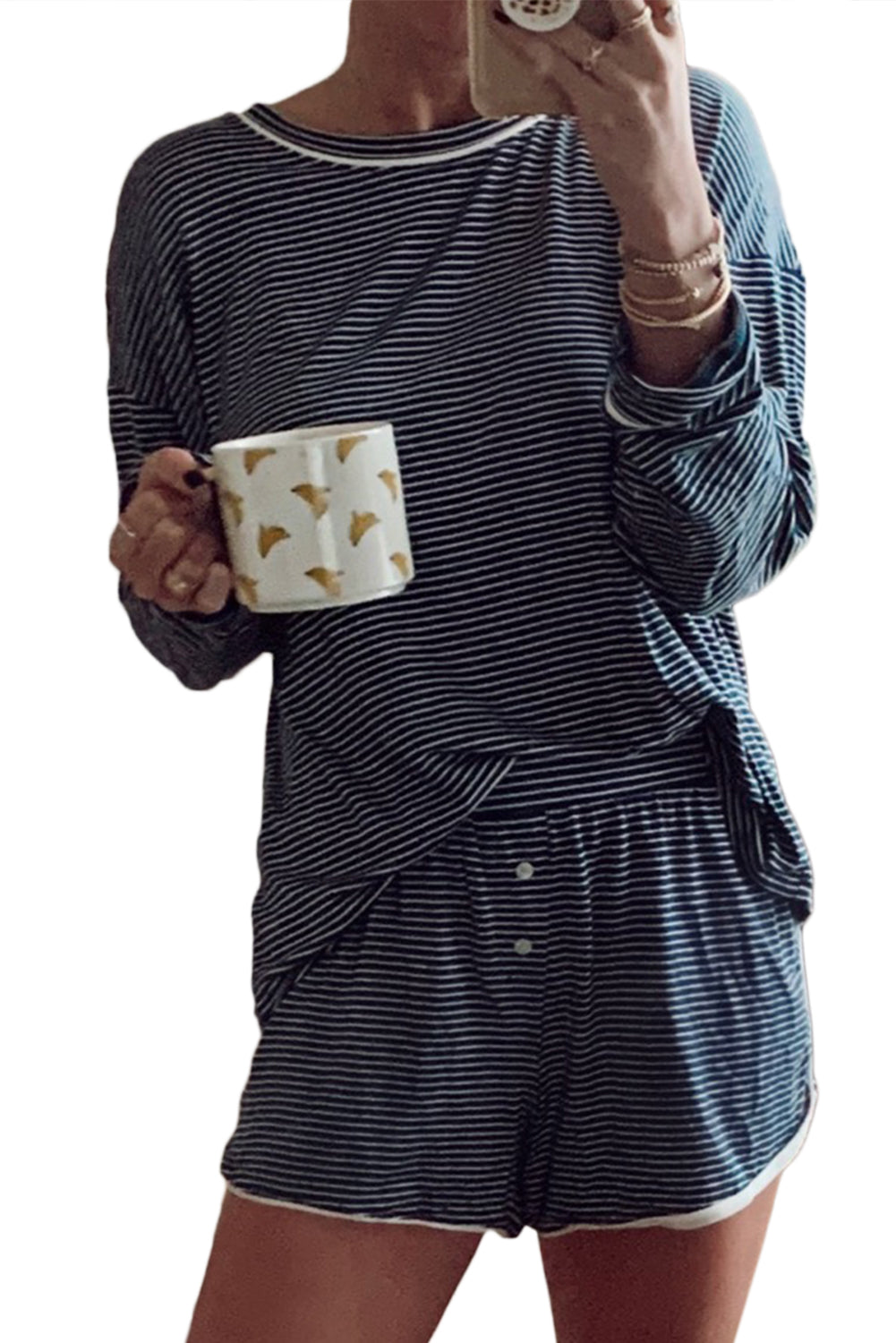 Perfect for lazy Sunday mornings, movie nights, or casual lounging at home. The coordinated stripe pattern creates a polished look while maintaining ultimate comfort. Mix and match with other loungewear pieces for versatile styling options.