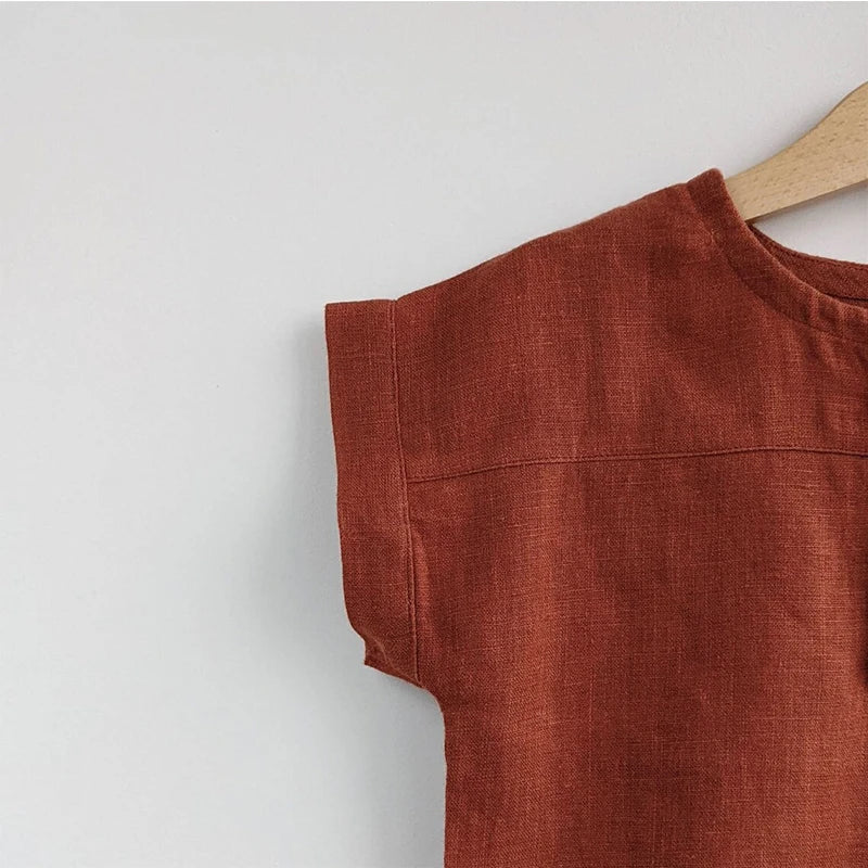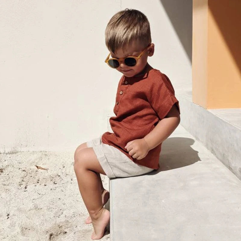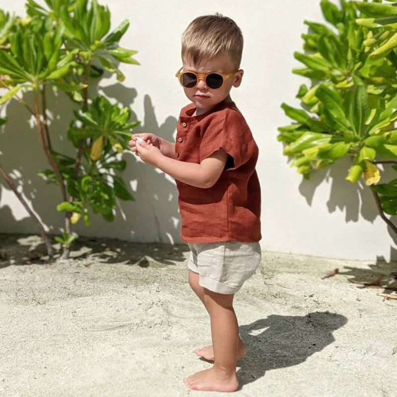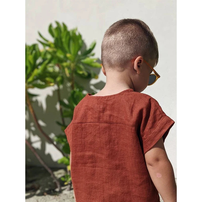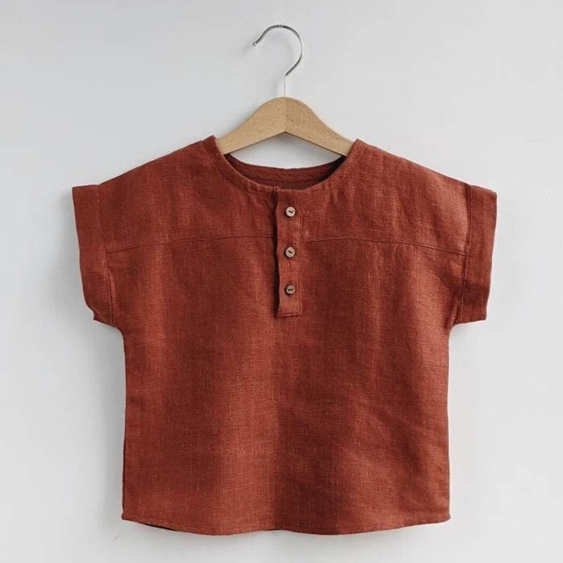 Children's Boy's Round Neck Buttons Short-Sleeved Linen Top