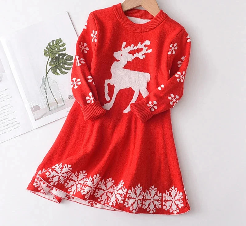 Children's Girls Knitted Christmas Long Sleeve Dress 3-7Y