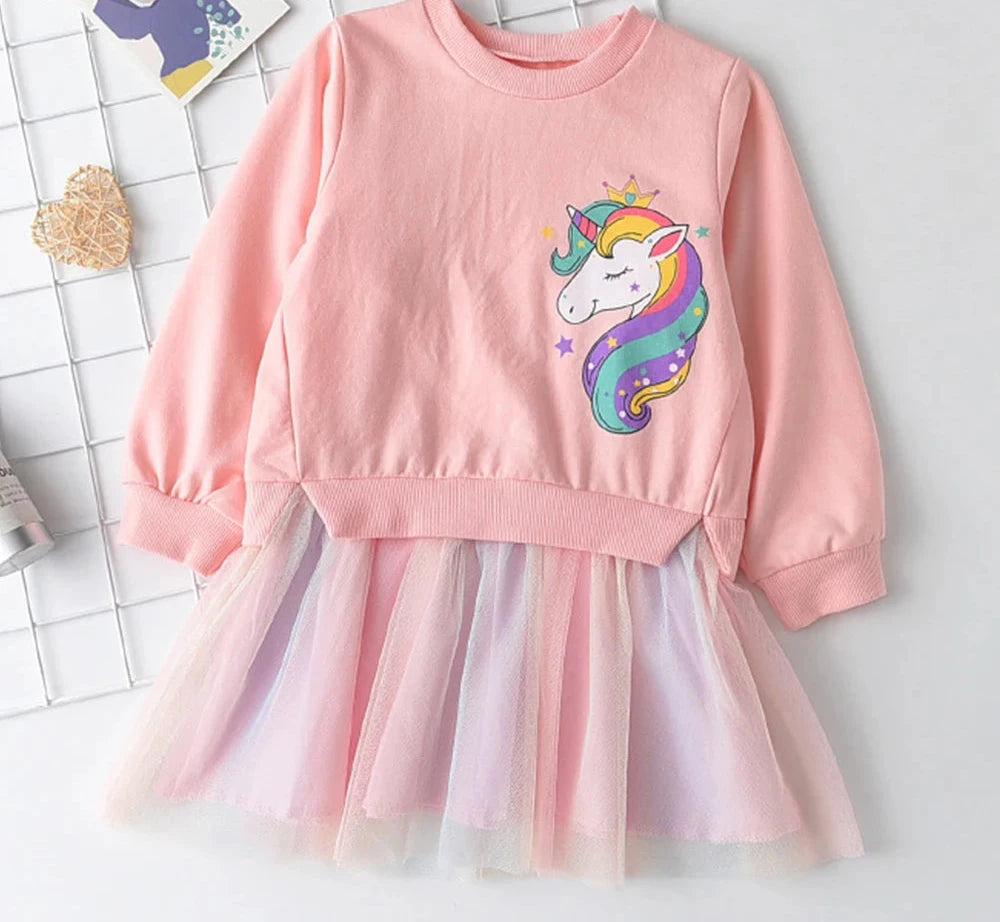 Children's Girl's Unicorn Princess Dress Toddler Dress 3-7 Y