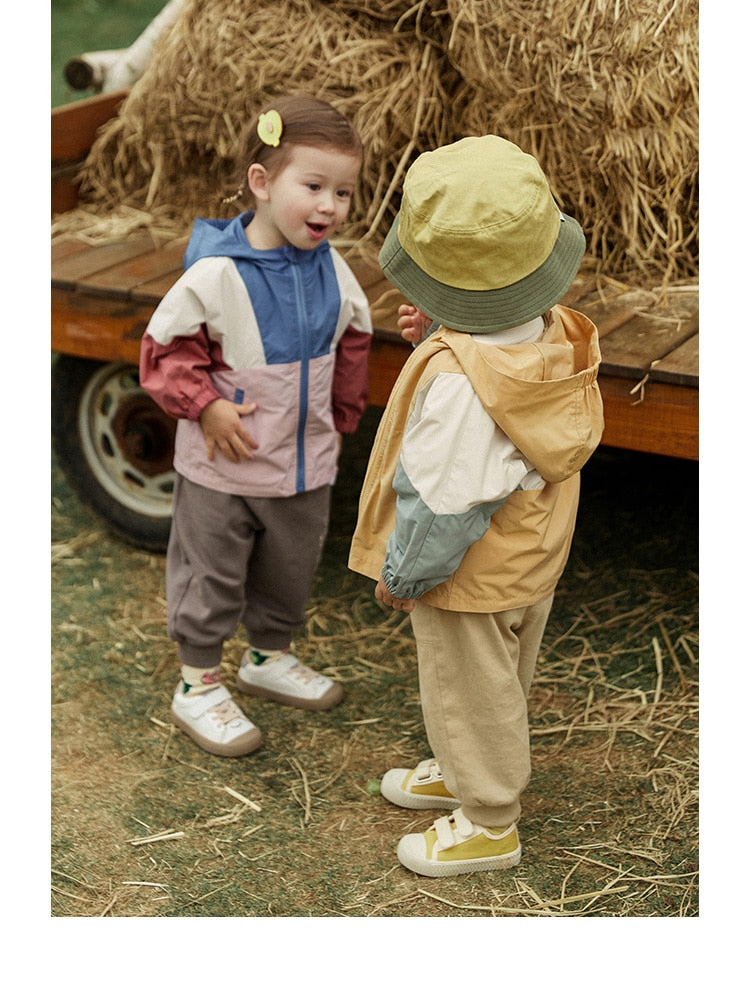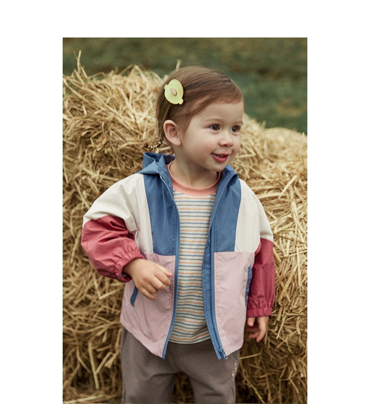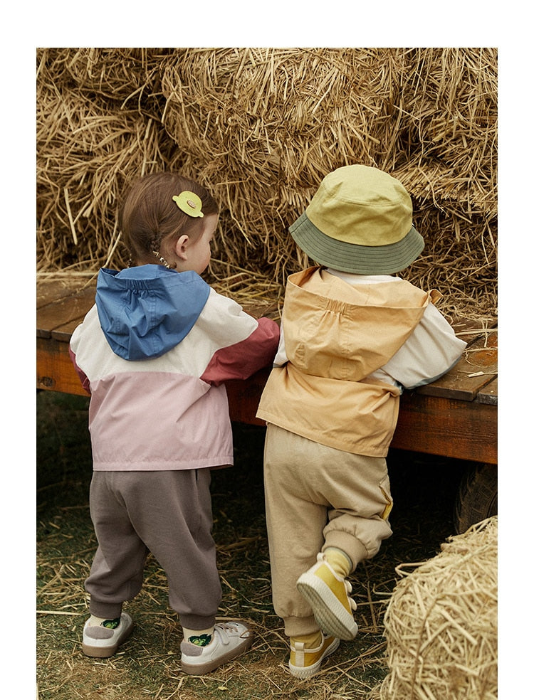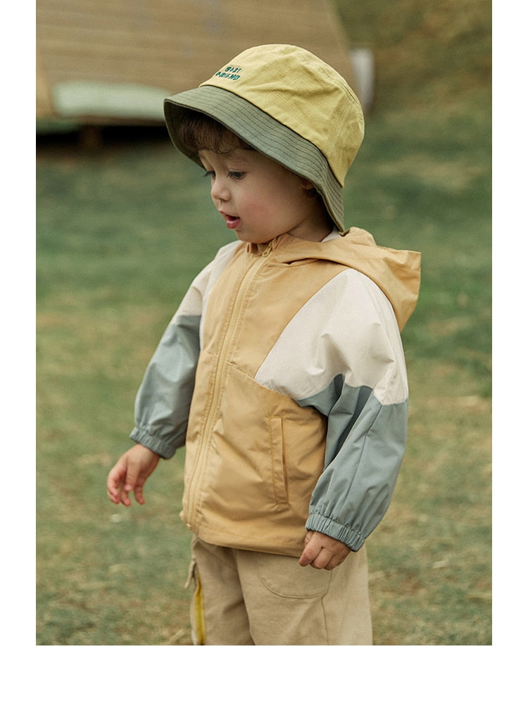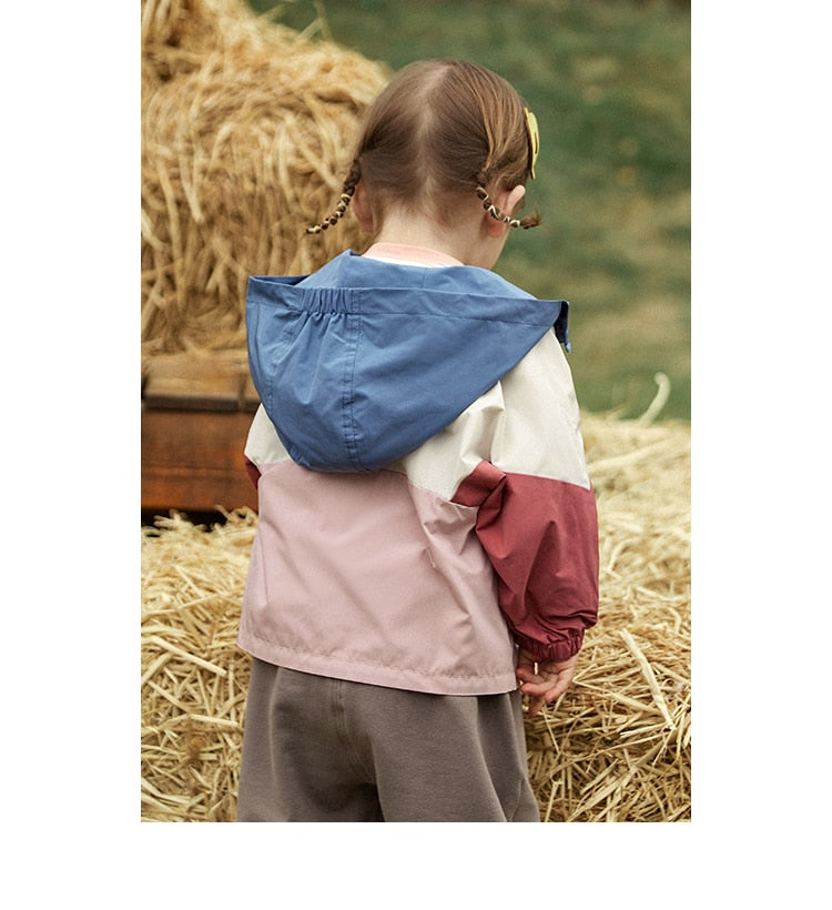 Children's Patchwork Hooded Outwear Windbreaker