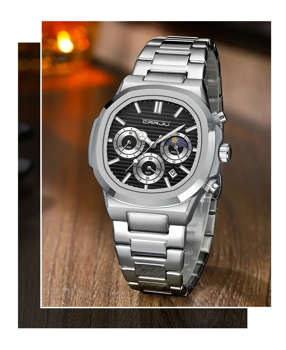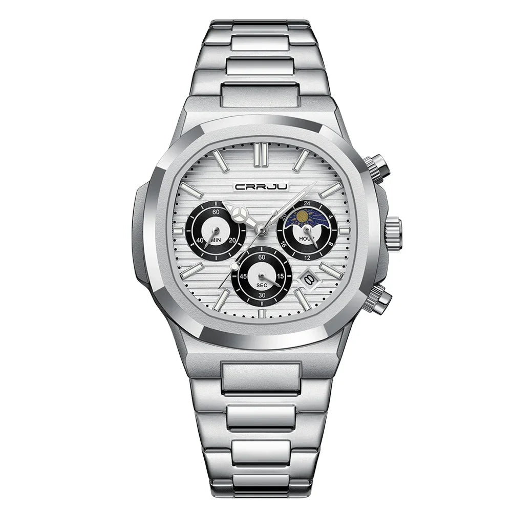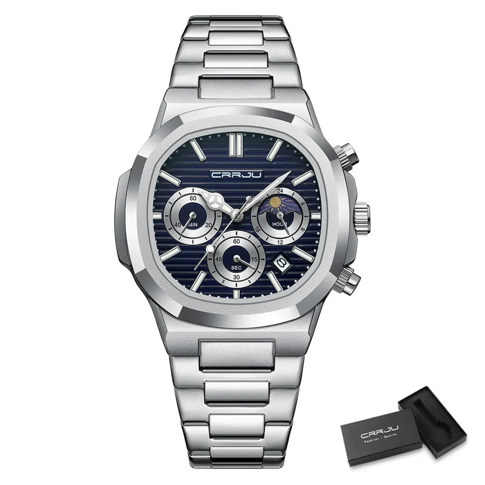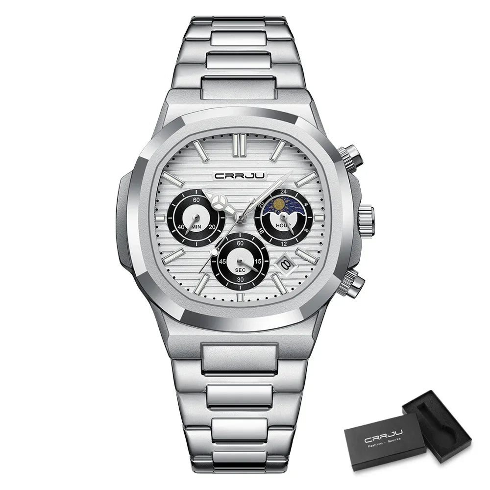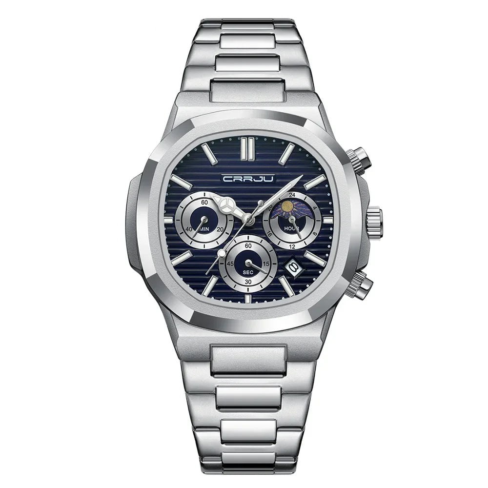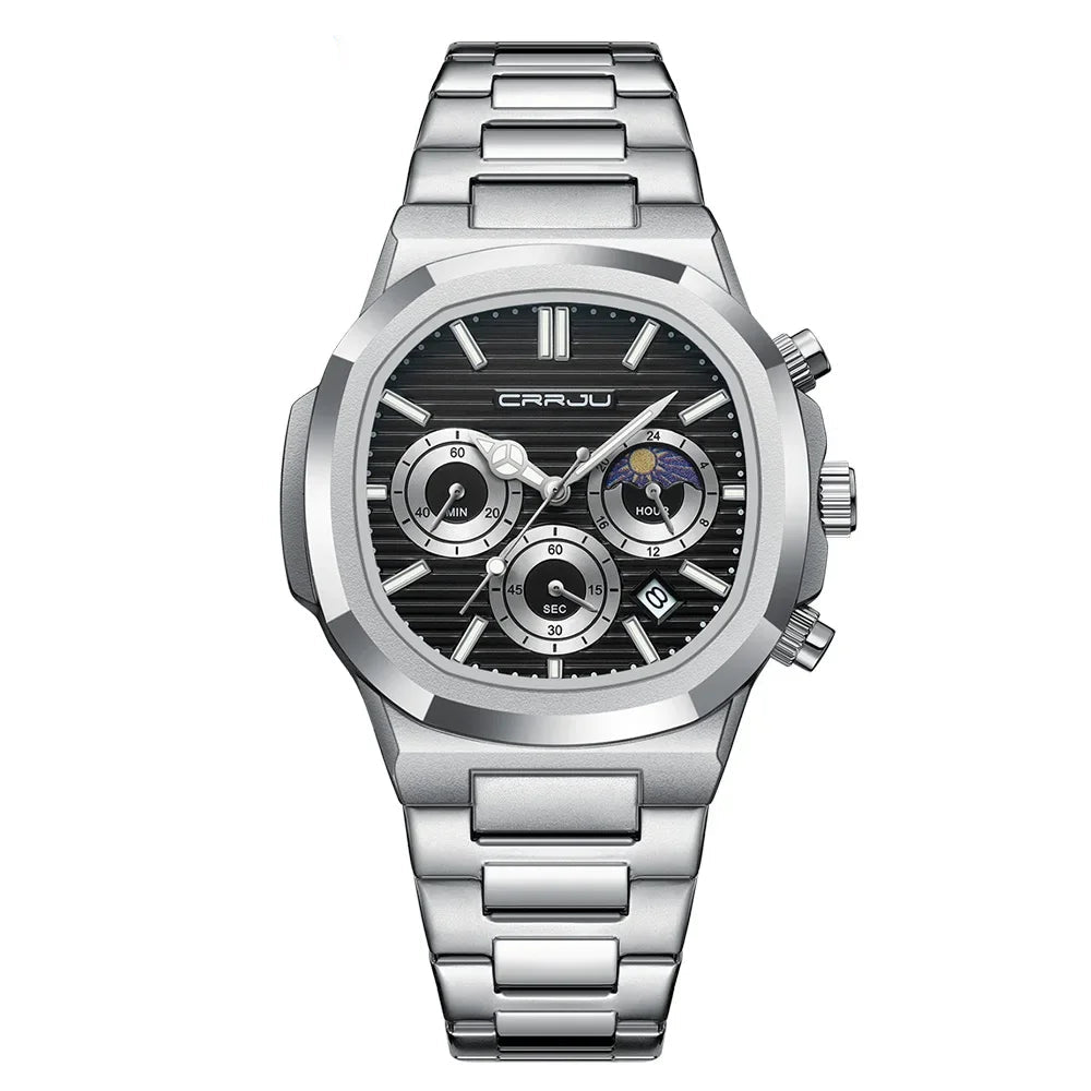 Men's Waterproof Pilot Chronograph Watch - Luminous Stainless Steel Timepiece
