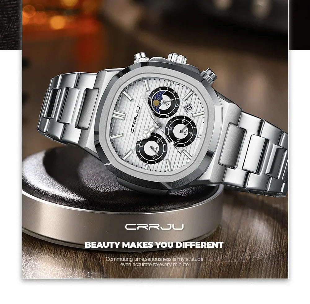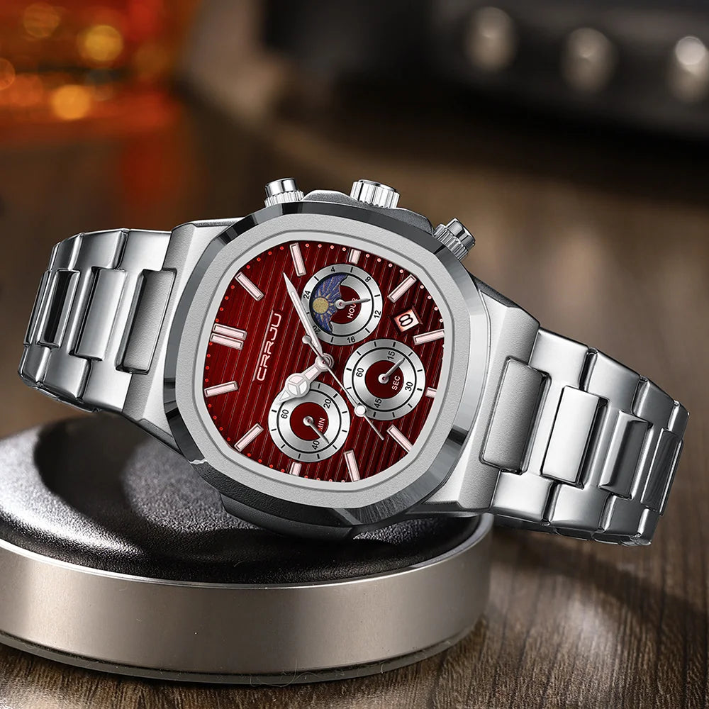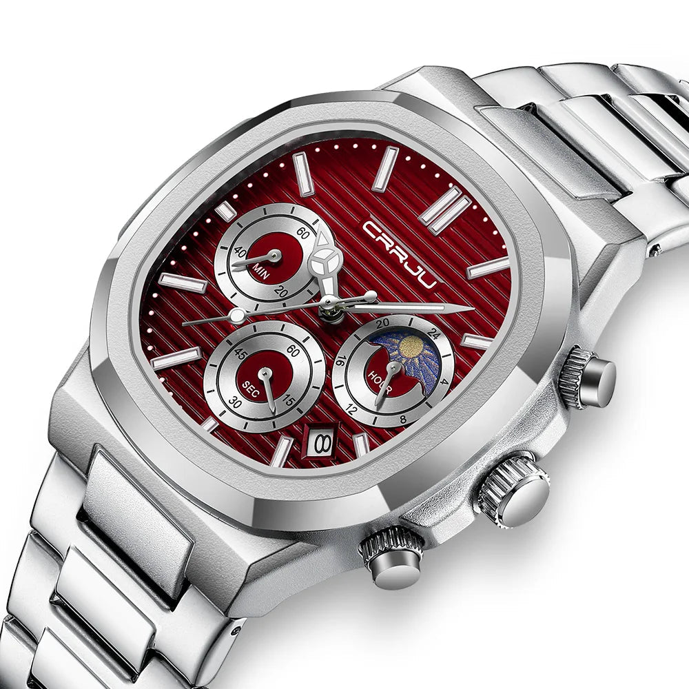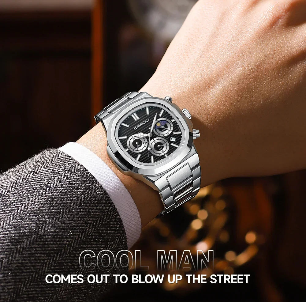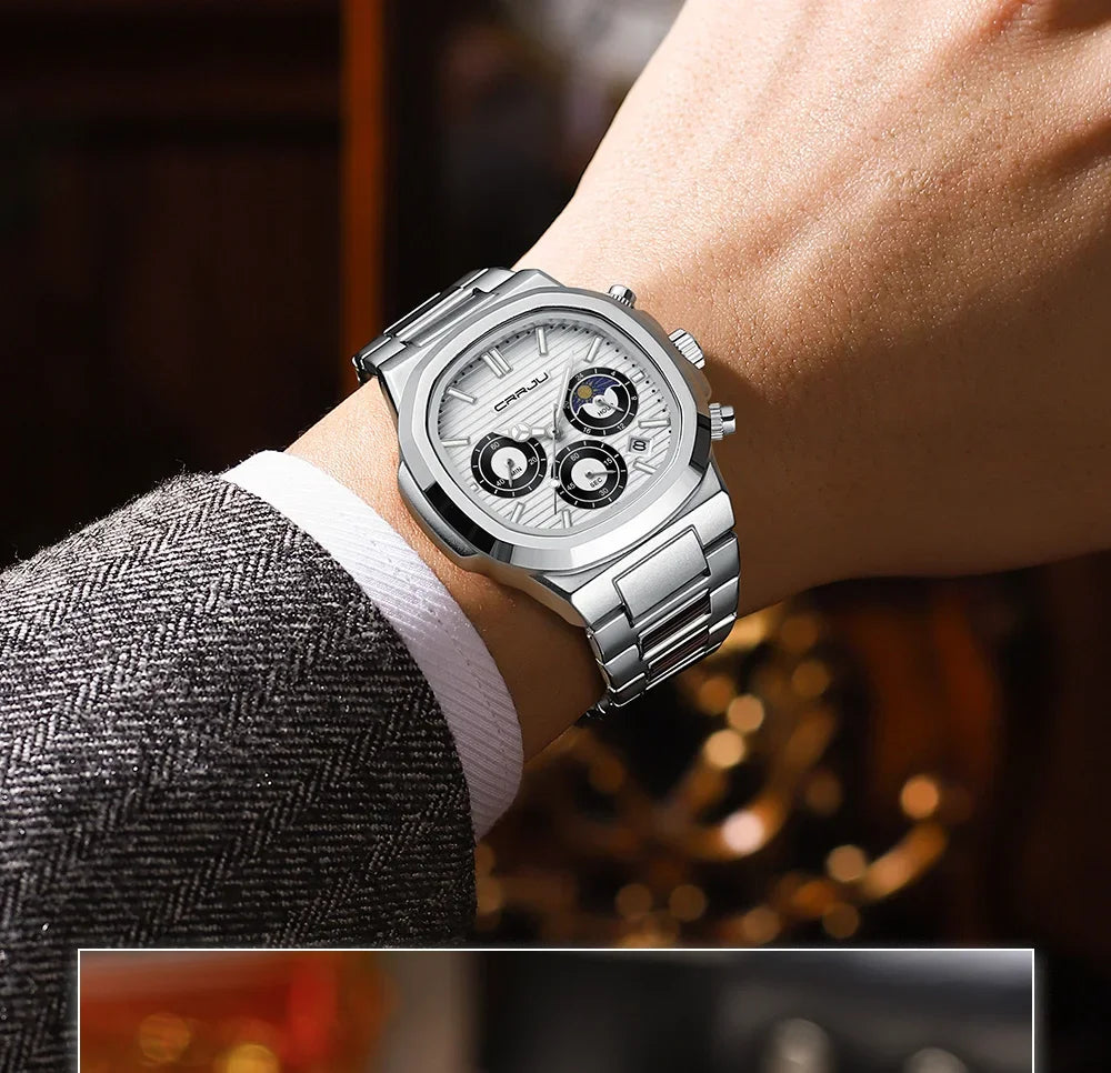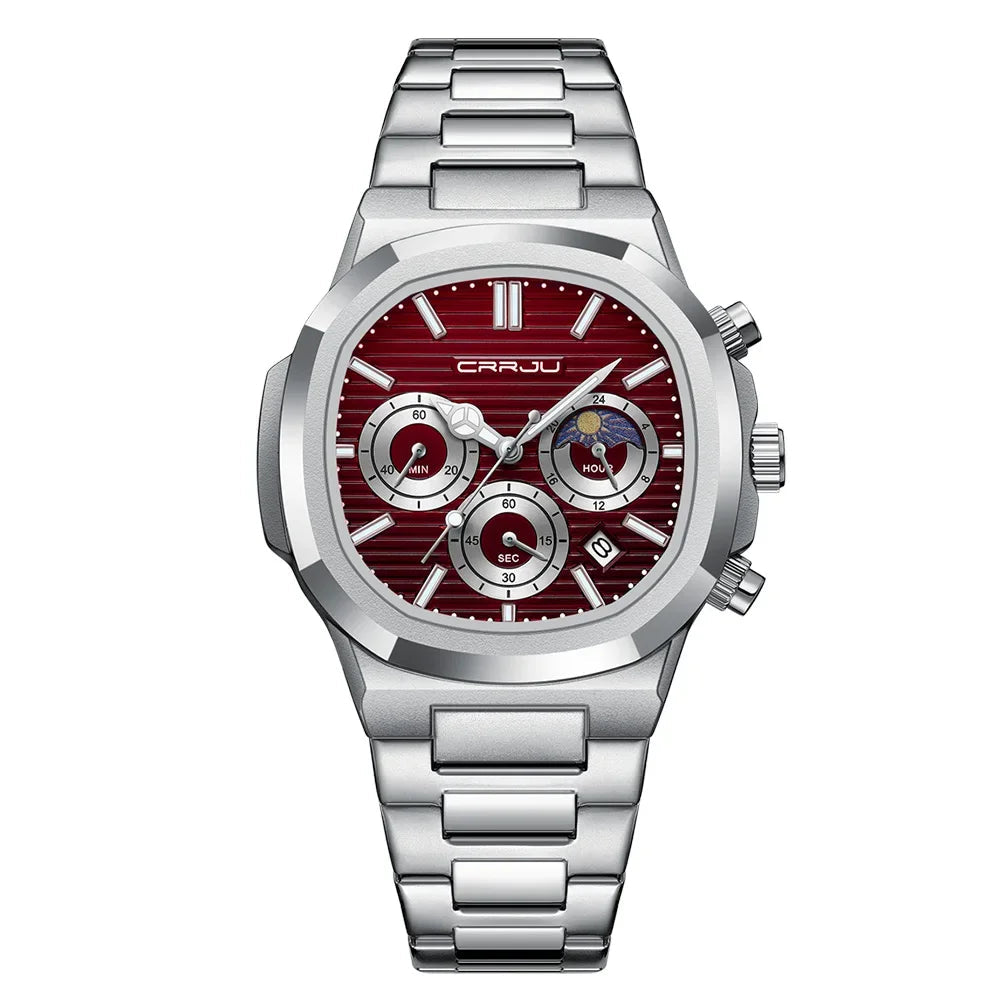 Men's Waterproof Pilot Chronograph Watch - Luminous Stainless Steel Timepiece