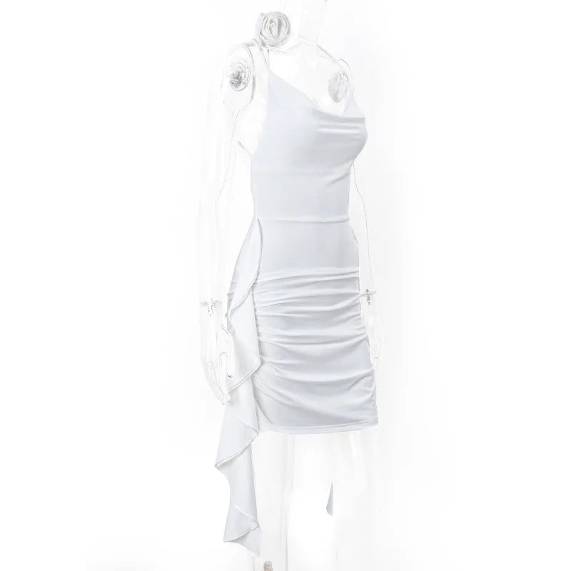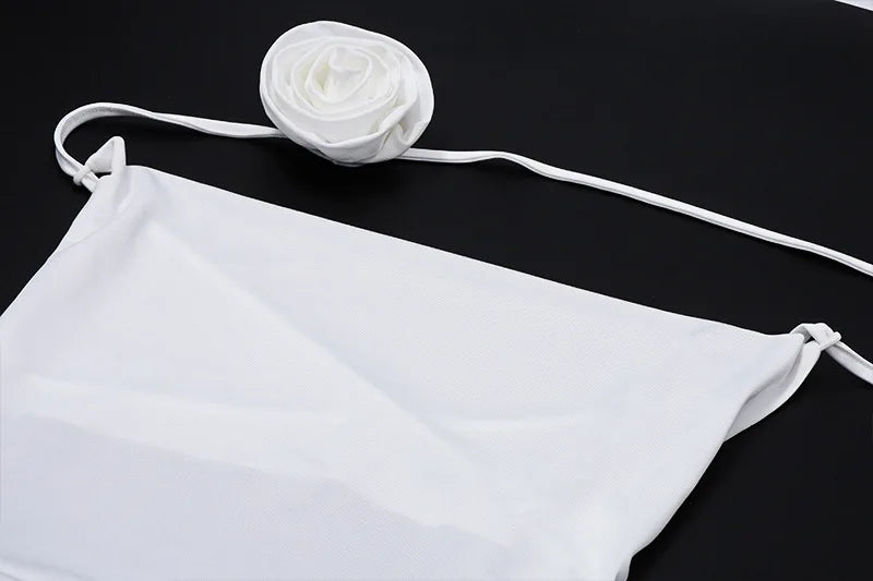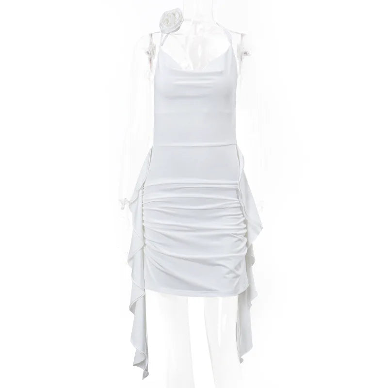 Women's Coquette Aesthetic Ruffle Detail Mini Outfit Sleeveless Floral Applique Halter Backless Party Dress