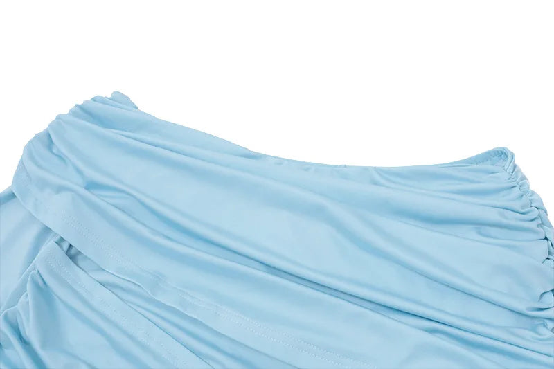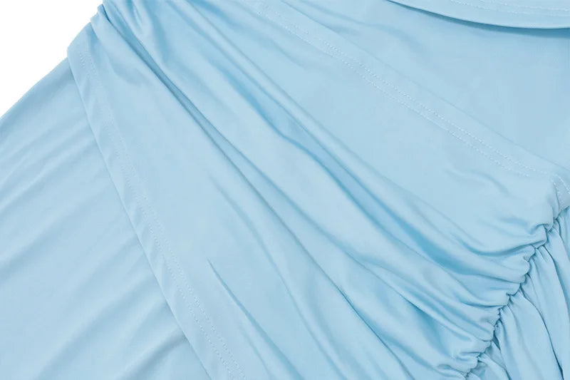 Command attention at any event with this stunning asymmetrical ruched maxi dress. Featuring elegant long sleeves and a flattering bodycon silhouette, this gown is perfect for making a sophisticated statement.