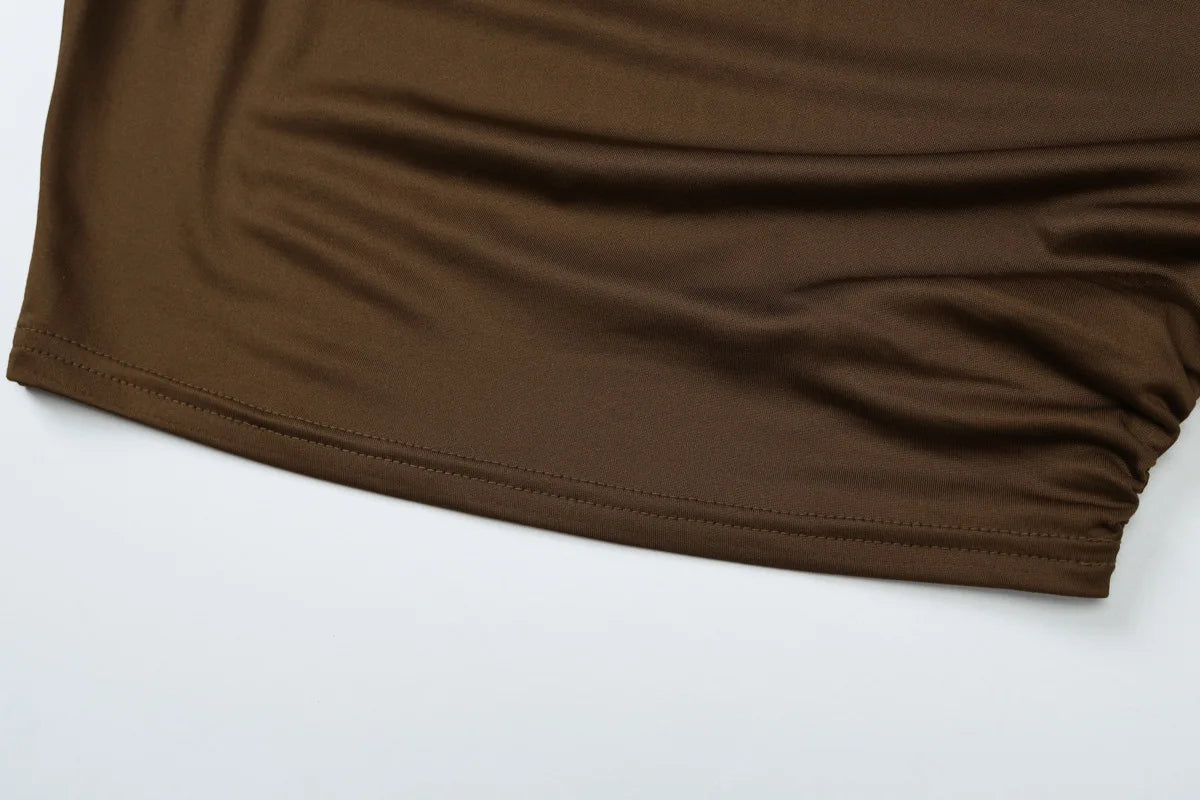 Women's Elegant Ruched 2 Piece Dress Set - Asymmetrical Top & Maxi Skirt