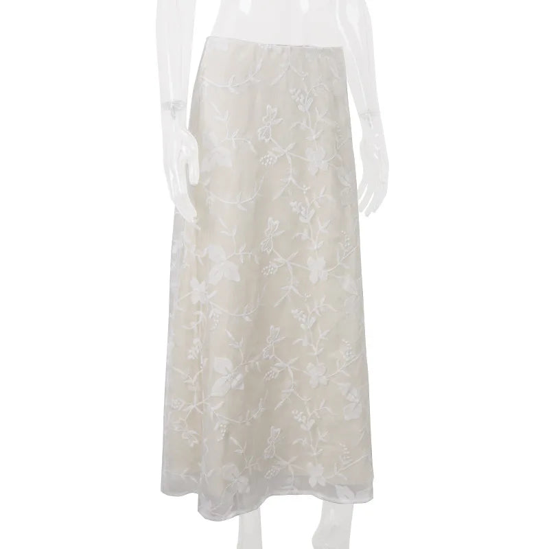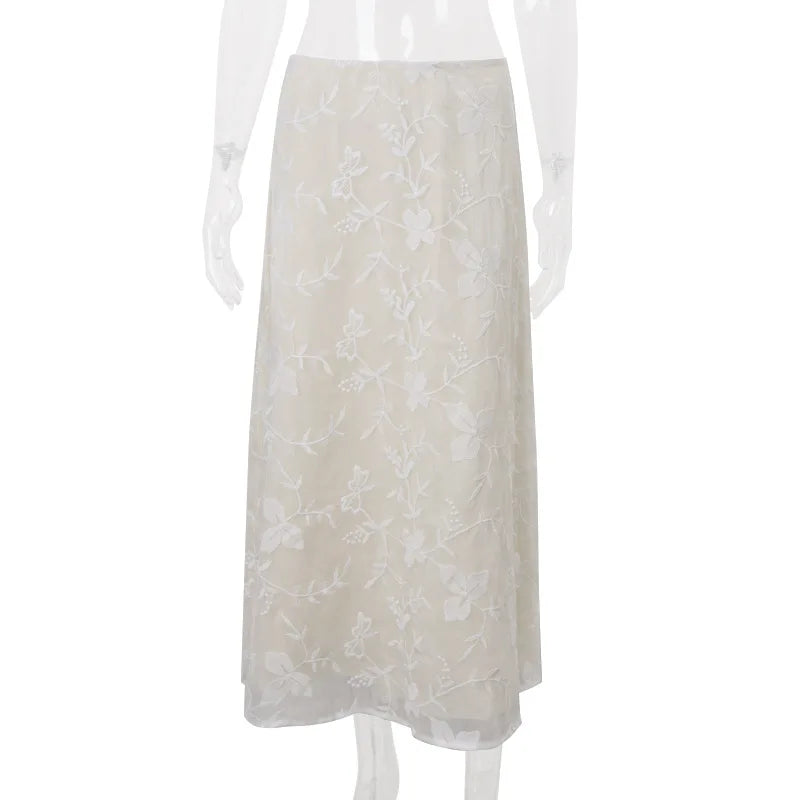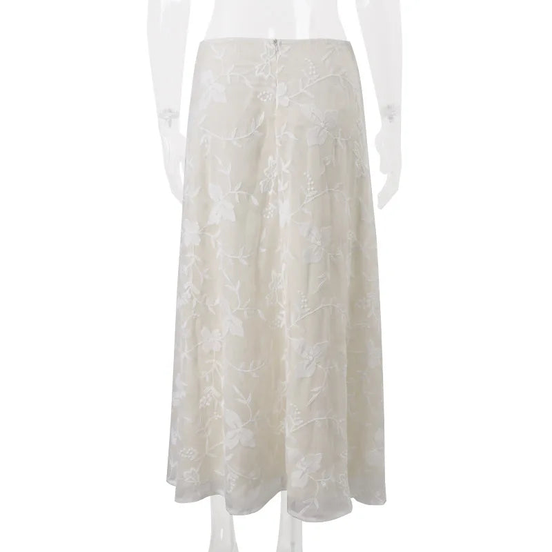 White Jacquard Maxi Skirt - Elegant Low Rise Y2K Summer Skirt