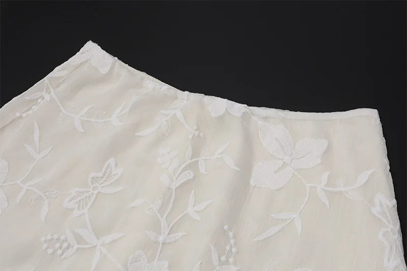 Embrace effortless elegance with this stunning white jacquard maxi skirt. Perfect for summer vacations and special occasions, this low-rise design captures the essence of Y2K fashion while maintaining timeless sophistication.