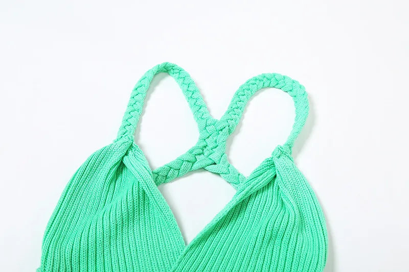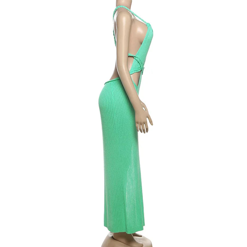 Women's Green Knitted Cut-Out Maxi Dress - Backless Summer Beach Dress