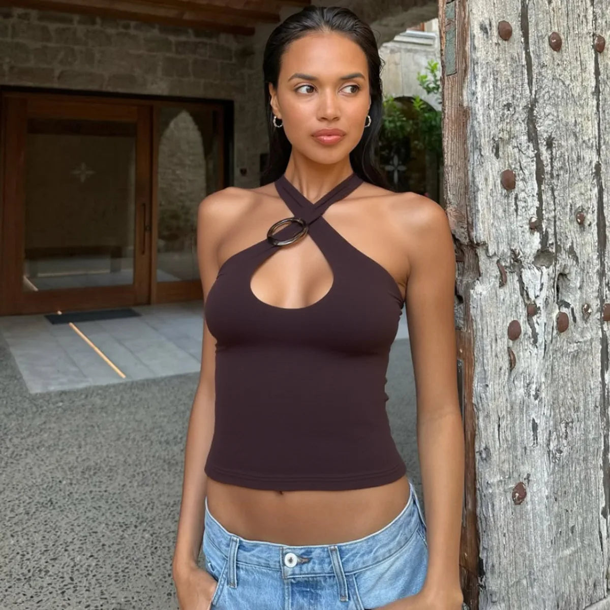 Women's Summer Crossed Ties Crop Top Backless Tank Top Vest