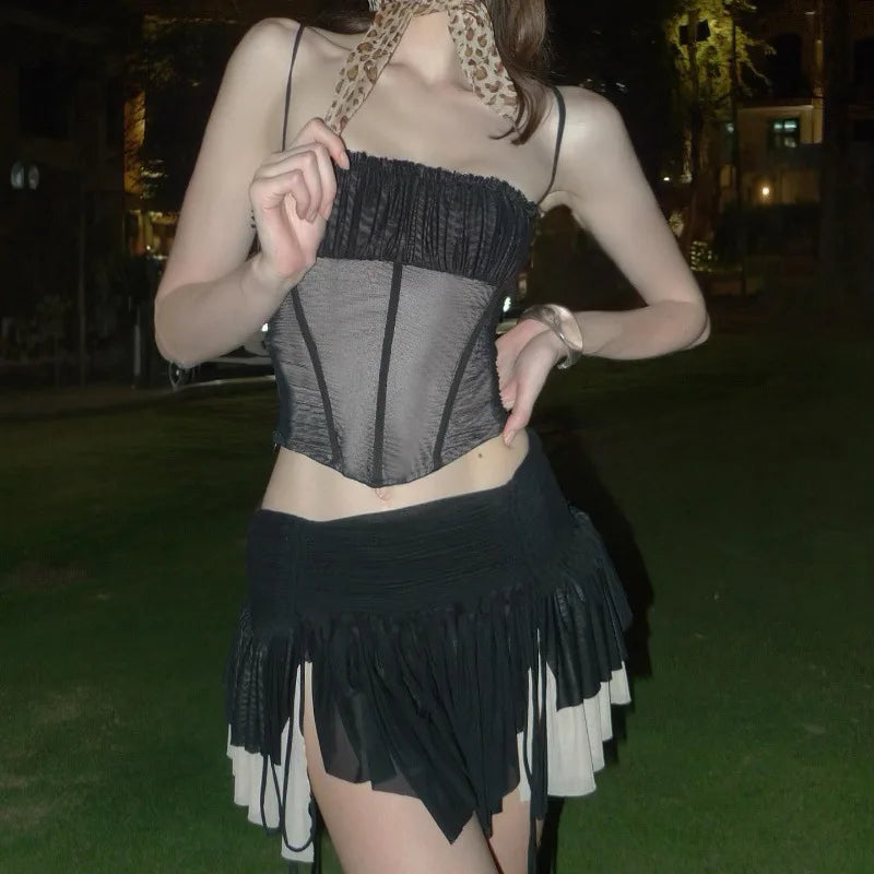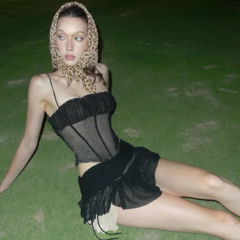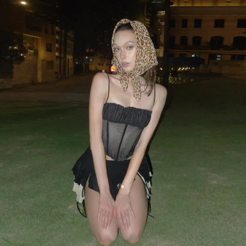 Pair with high-waisted black trousers and heels for a chic evening look, or style with a leather skirt for edgy glamour. The chain detail catches the light beautifully, making it perfect for dancing and nightlife. Layer under a blazer for a more refined approach to the animal print trend.