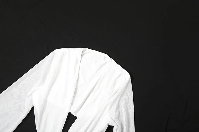 - Long Sleeves: Elegant sleeve coverage with sheer mesh panels