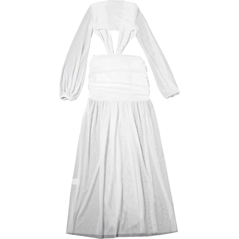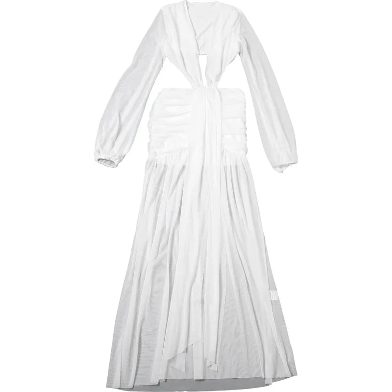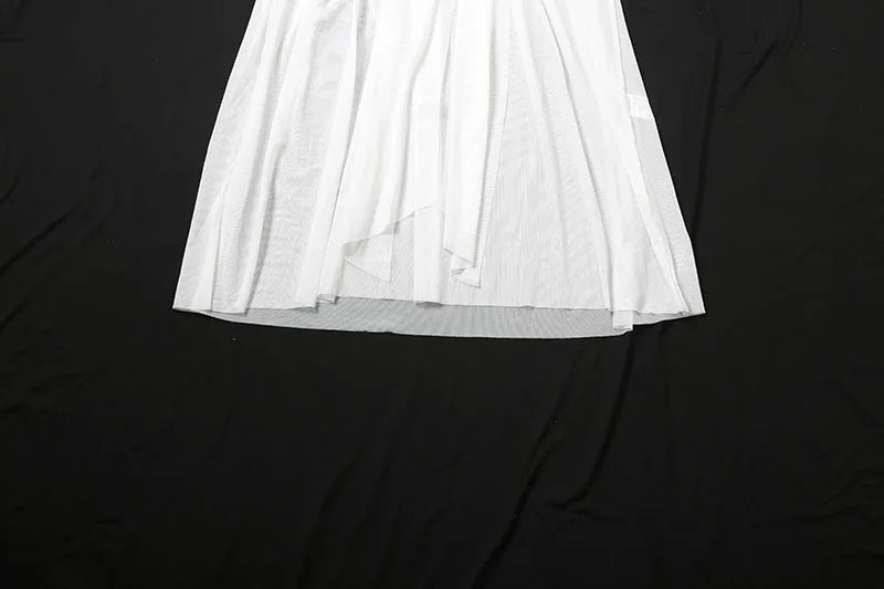 This show-stopping gown is ideal for formal events, cocktail parties, or any occasion where you want to make an unforgettable impression. The combination of sheer mesh and strategic draping creates a look that's both sophisticated and alluring.