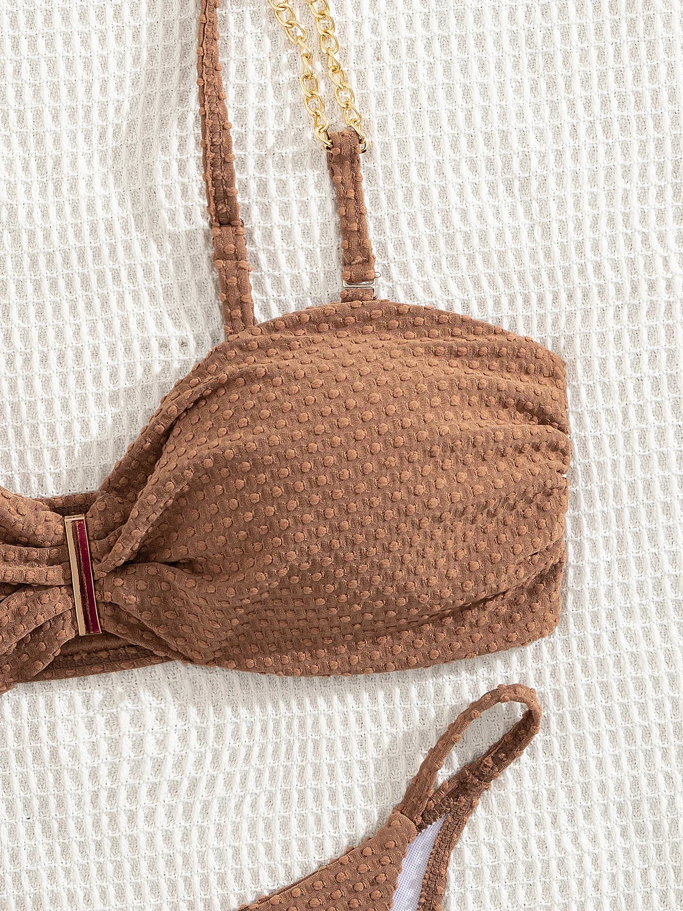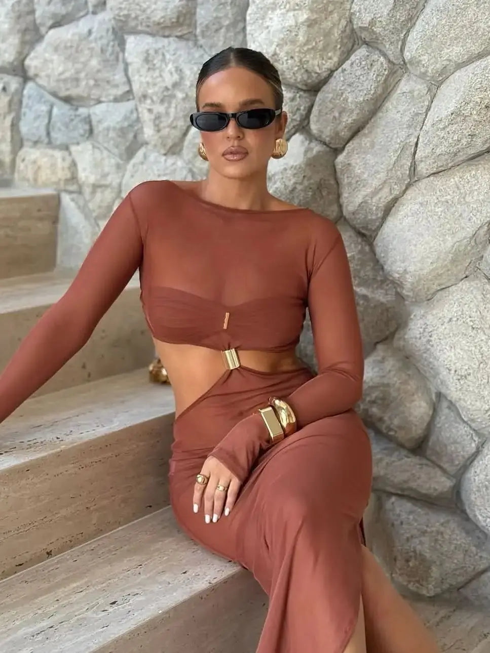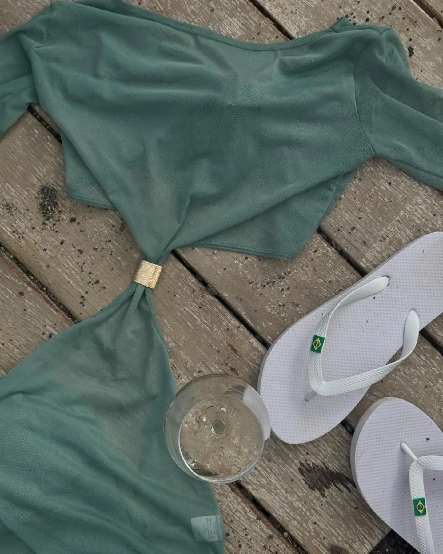 Women's Cut out Dress with Bikini 3 Pcs Long Sleeve Cover Up Lace Up Slit Long Summer Beach Dress