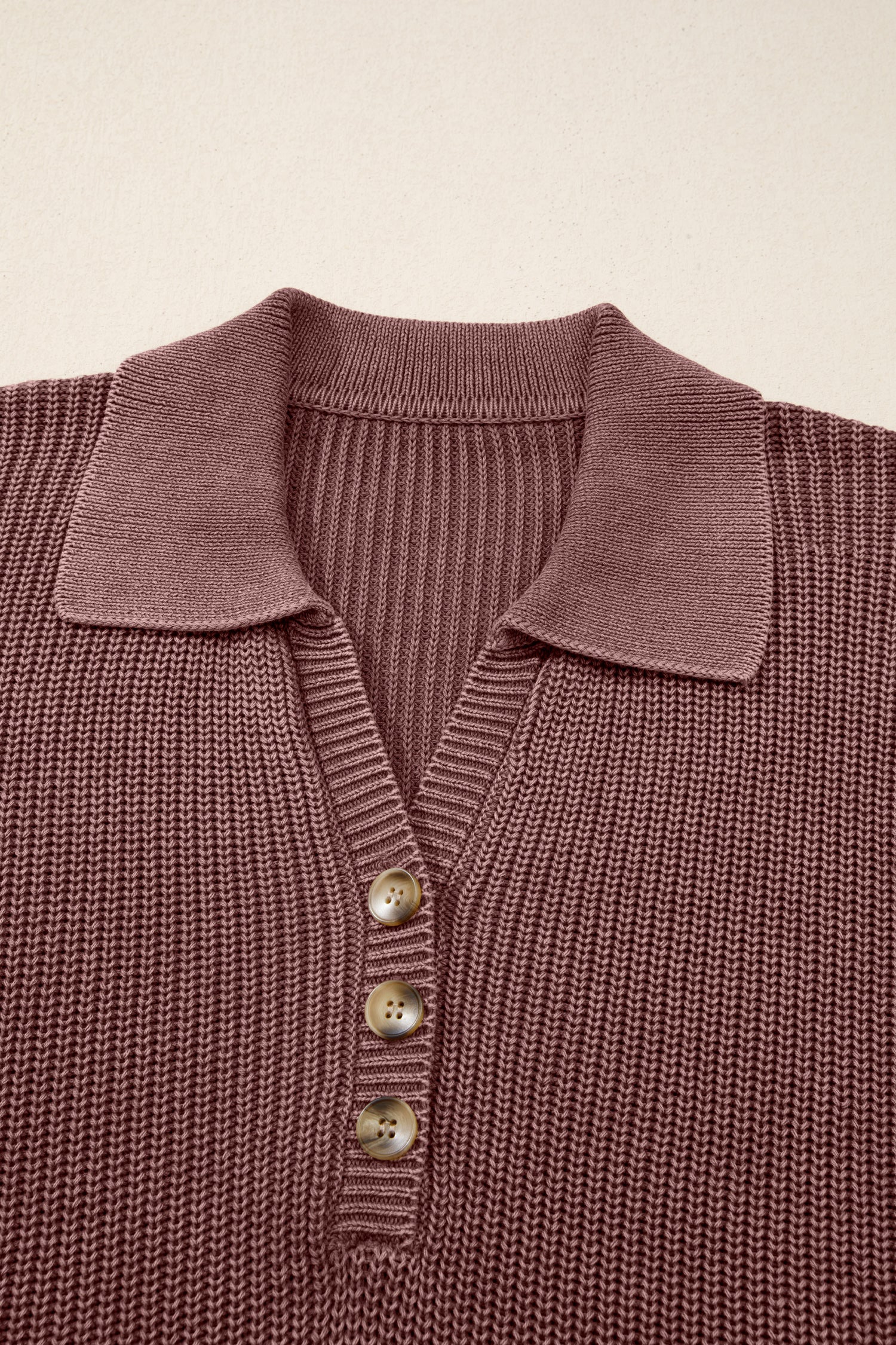 Mineral Washed Knit Button Polo Collar Loose Sweater - Dark Brown