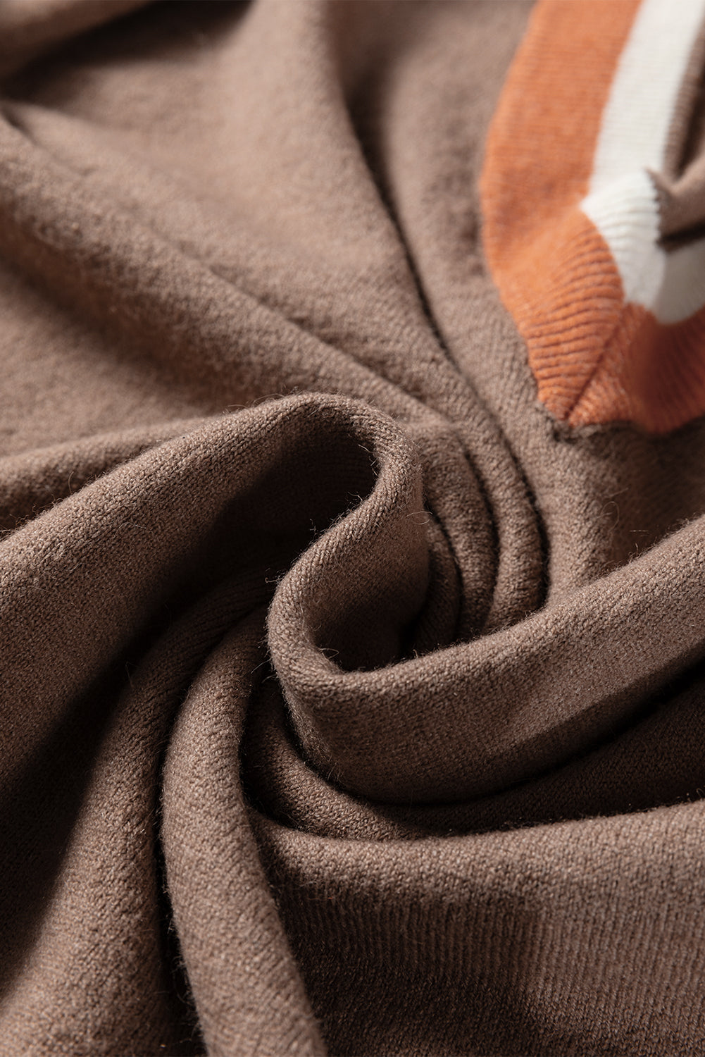 Channel timeless athletic-inspired style with this dark khaki varsity sweater. The contrast striped trim and V-neck design create a sporty yet sophisticated look that's perfect for casual autumn days.