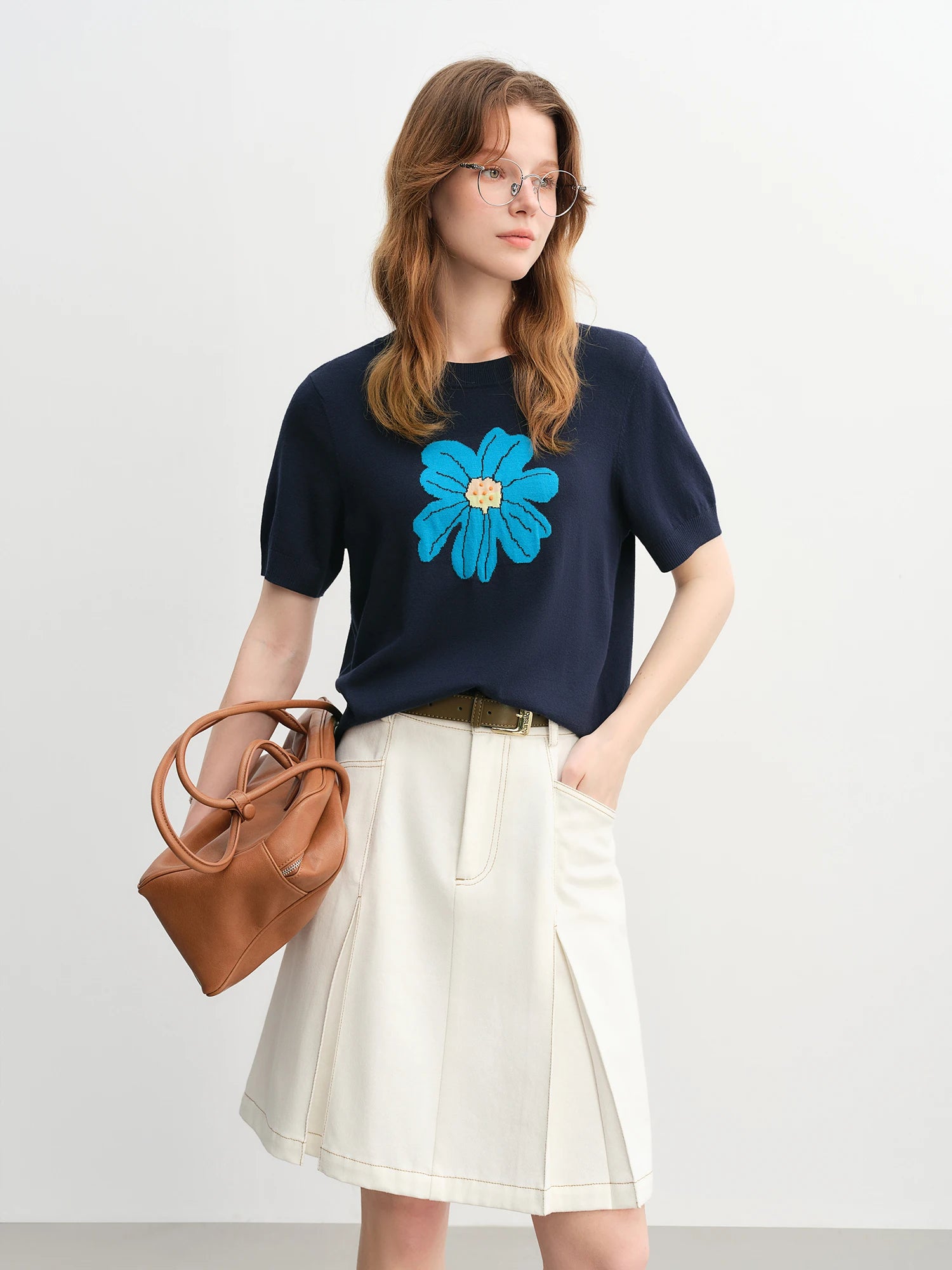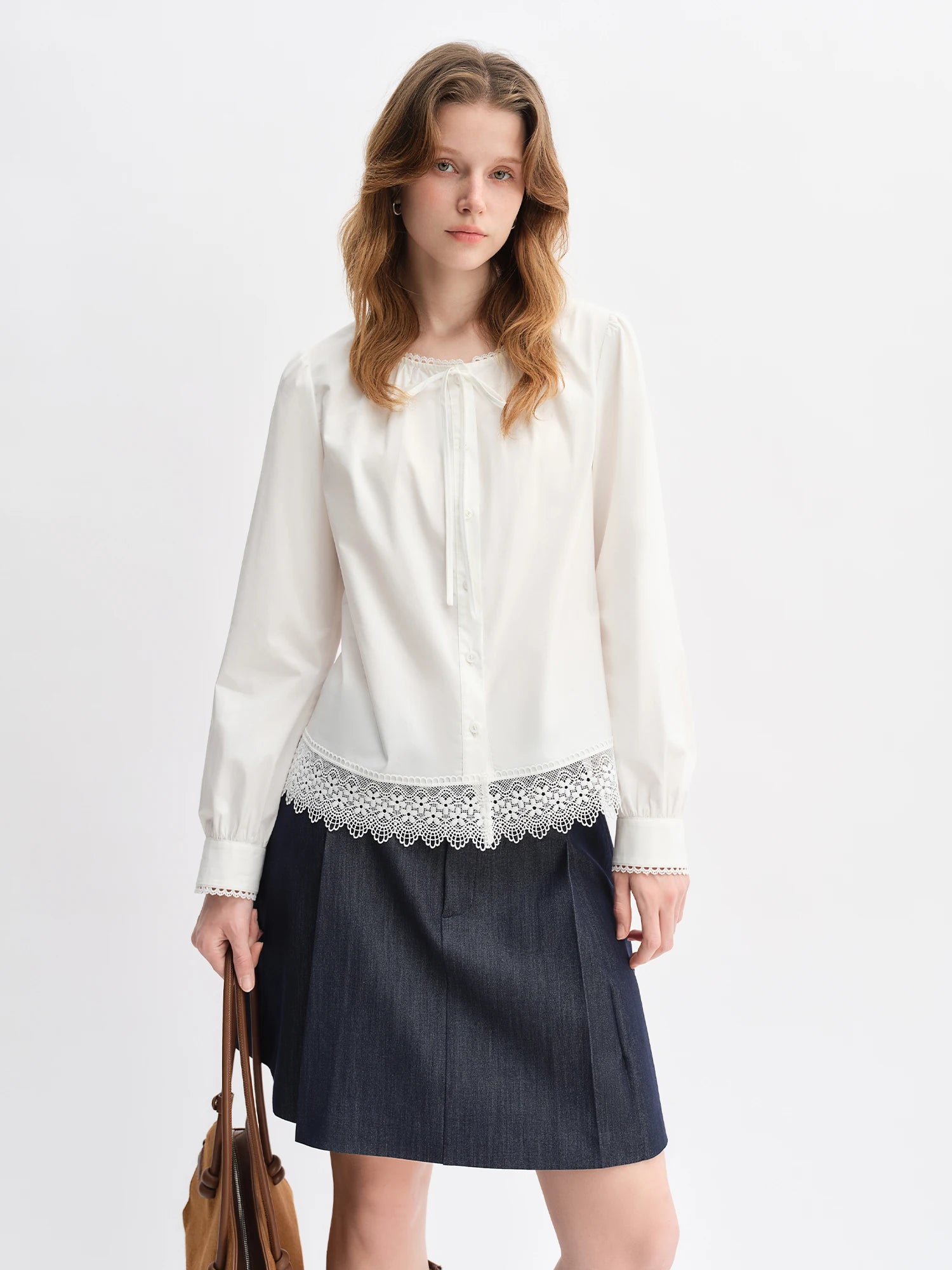 Women's Autumn Clothing Set - Long Sleeve Shirt & A-Line Skirt