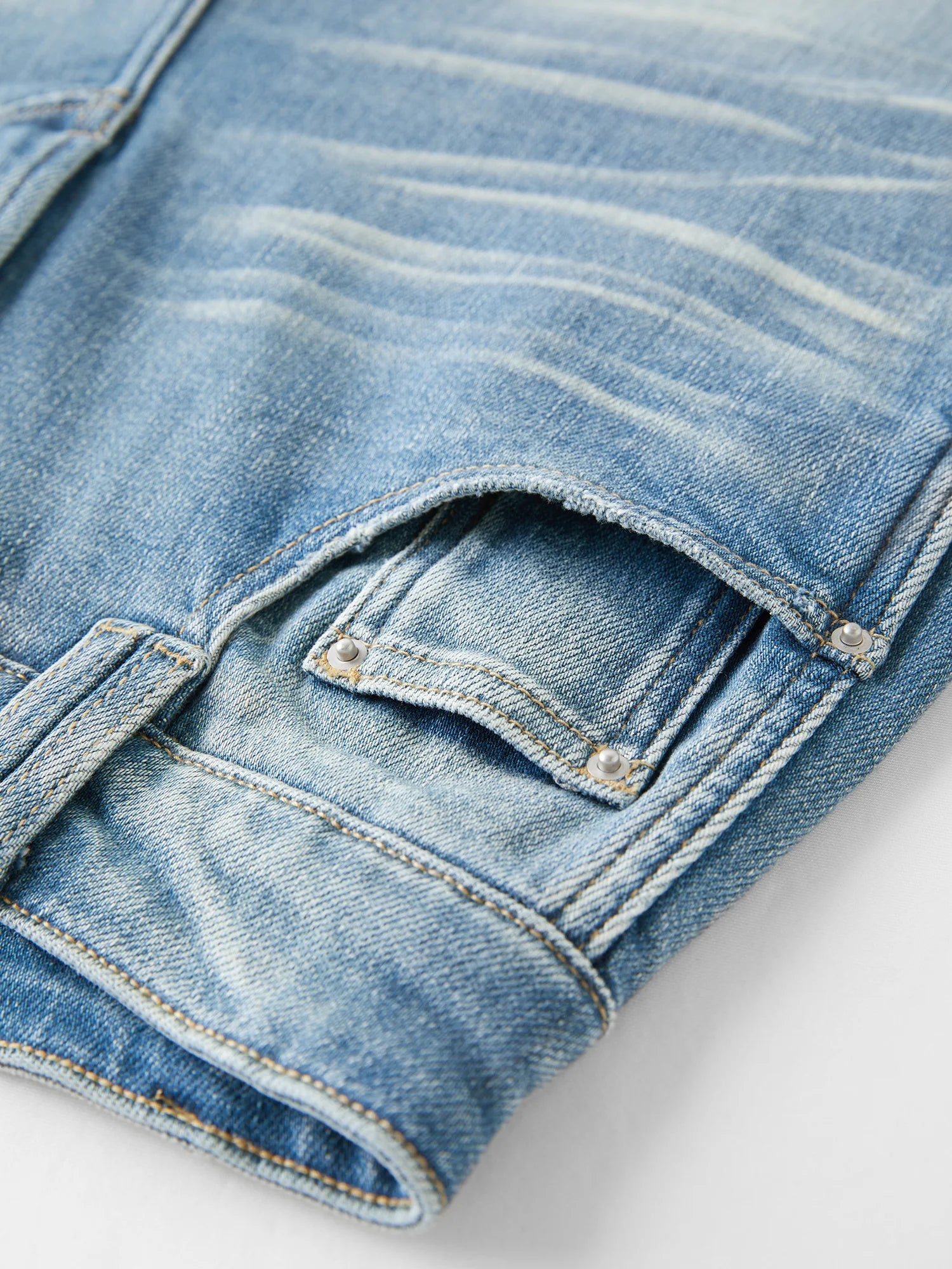 - Retro washed blue denim - Vintage-inspired finish adds character and style