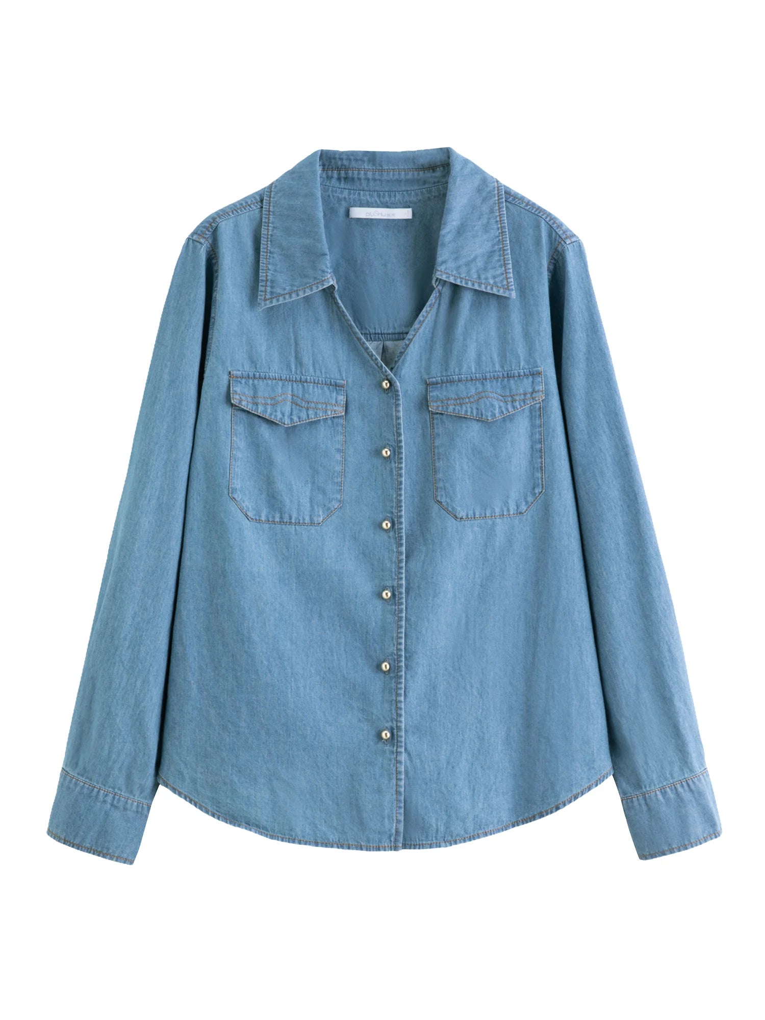 Elegant Double Collar Denim Shirt