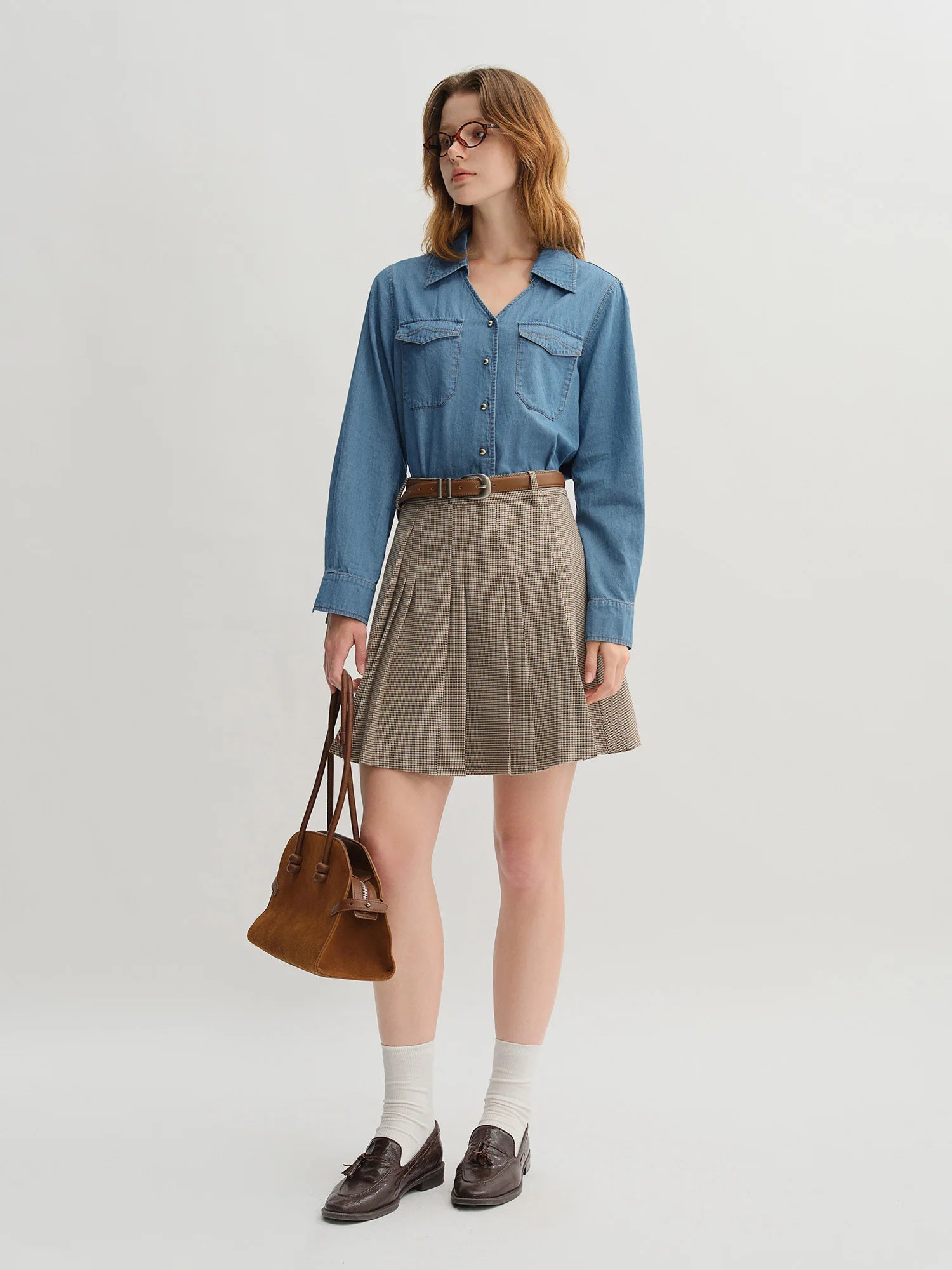 Elevate your autumn wardrobe with this sophisticated French-style denim shirt featuring a unique double collar design. Crafted for plus size women who appreciate timeless style with a modern twist, this versatile top effortlessly transitions from casual daywear to elegant evening occasions.