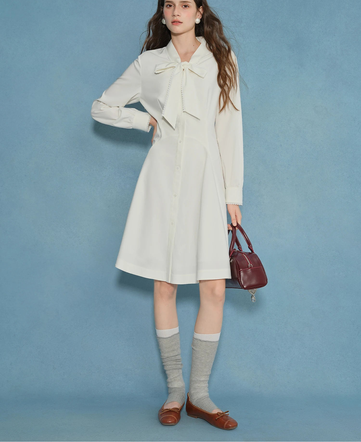 Make a stunning impression with this sophisticated white blouse dress featuring romantic bow details, delicate lace accents, and an elegant draped collar. Perfect for cocktail parties, special occasions, or any event where you want to look effortlessly chic.