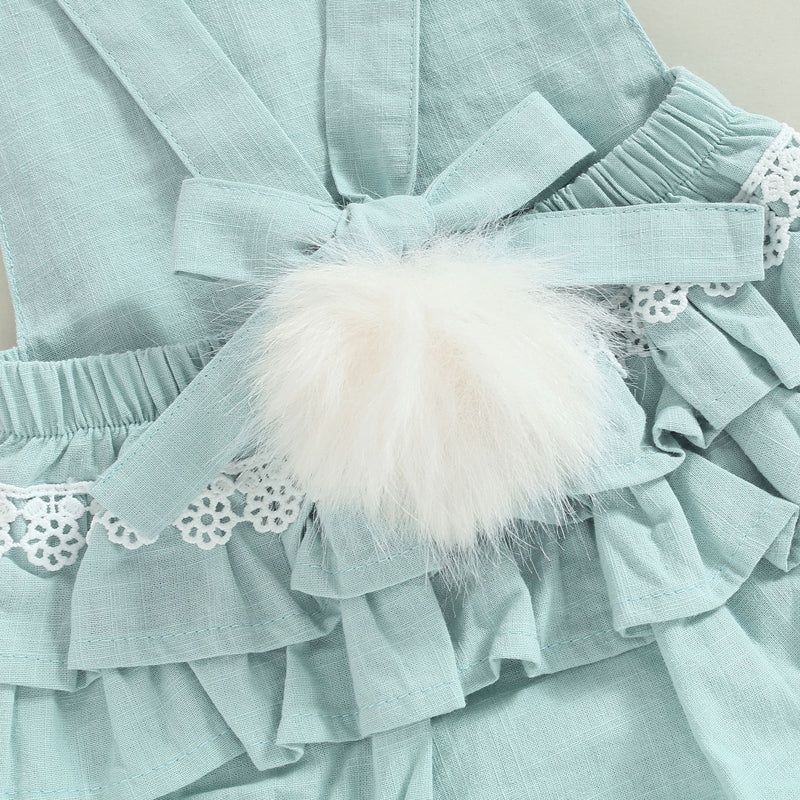Baby Girls Summer Casual Romper Sleeveless Floral Print Bunny Ear Playsuit with Cartoon Hat