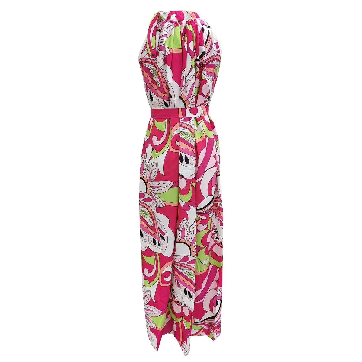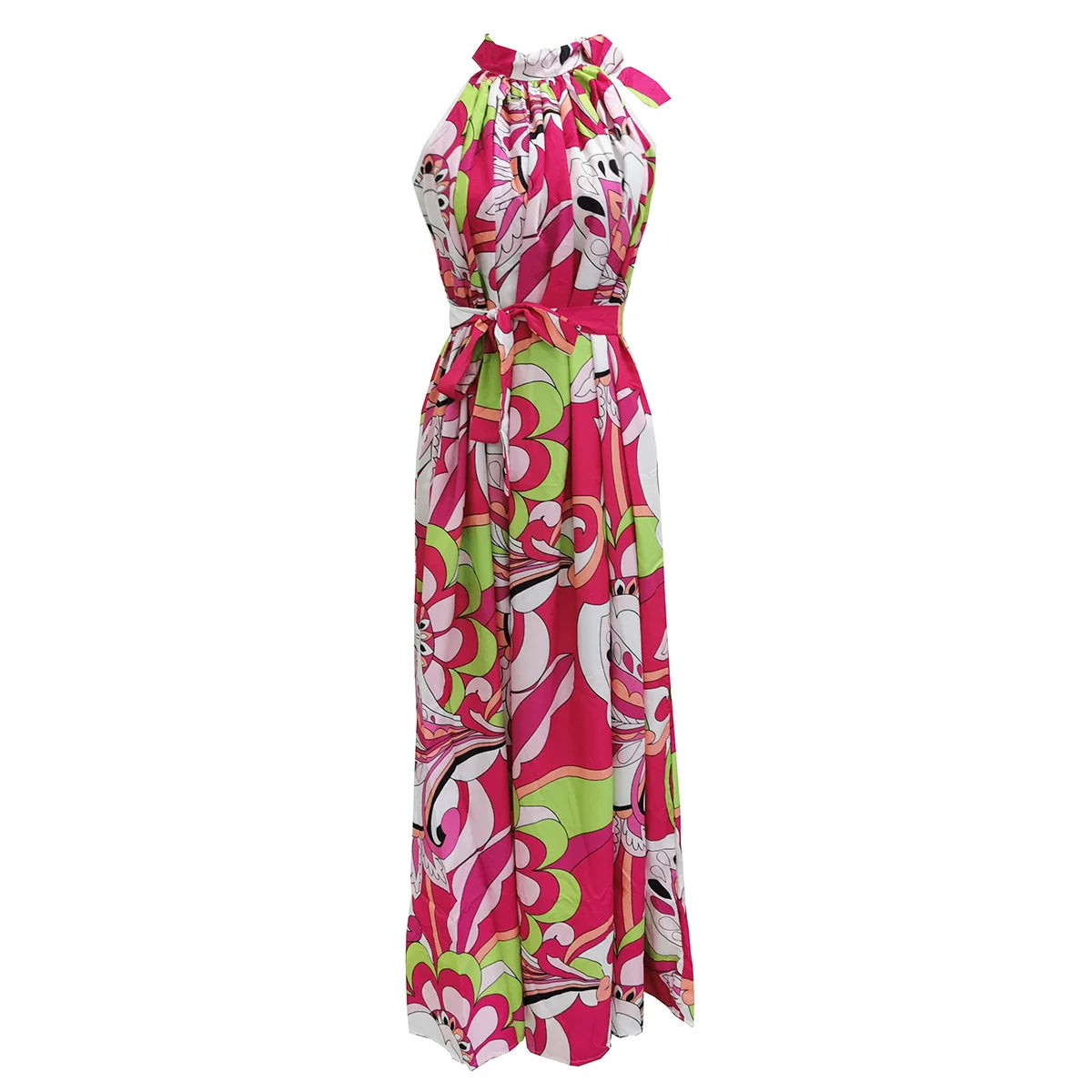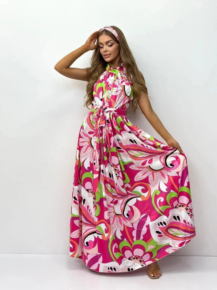 Women's Elegant Floral Printed Long Halter Beach Dress Loose Summer Bikini Cover Up